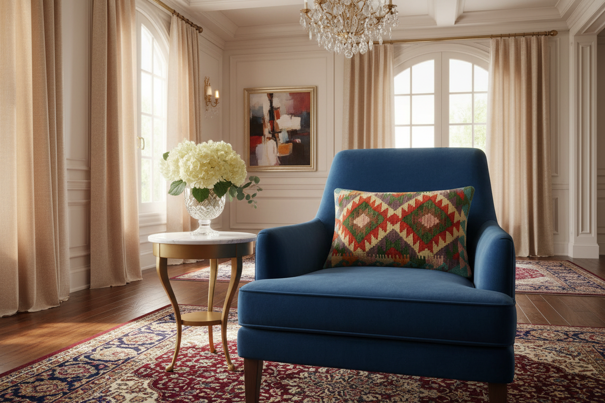 • Material: Hand Woven Kilim Rug and 100% Cotton