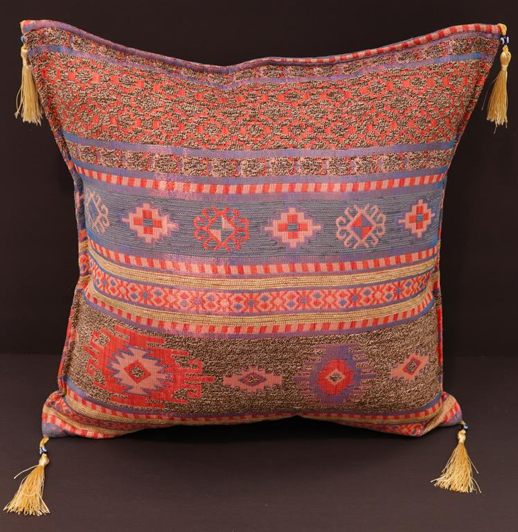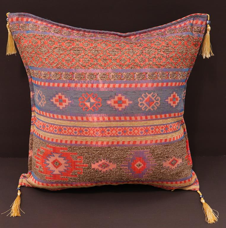 Embellish your home with this timeless casual chic Turkish decorative throw pillow. Handmade Jacquard woven on heavy Chenille fabric in a Turkish classic design inspired by an antique oriental tapestry, these exquisite pillows are a perfect addition to any decor. Made in a beautiful vibrant color pallet these beautiful pillows are double sided with a beautiful repetitive geometrical, naturalistic floral and traditional pattern. Masterfully artisan-crafted with a contemporary fashion palette producing bold intricate sharp patterns makes these decorative pillows a standout piece in any decor.