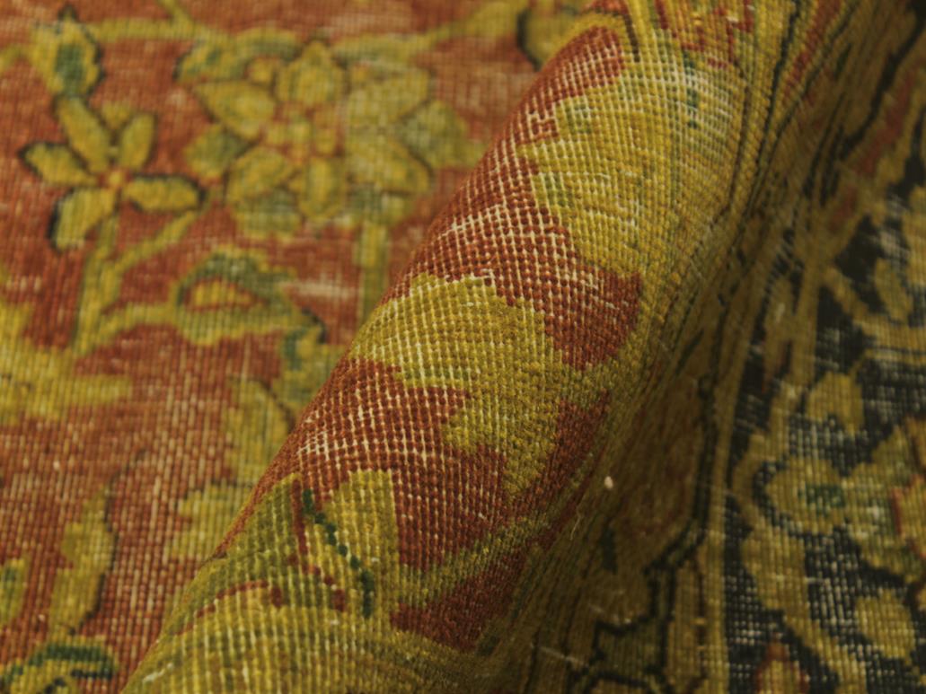A mesmerizing addition to any decor, this brand-new hand knotted vintage wool rug featuring vibrant colors and a traditional design is made by skilled artisans capable of creating the most exceptional Persian knotted rugs. Harnessing the natural energy of the sun, each rug is organically neutralized from its original color, distressed and then saturated in an infusion of a bold vibrant color pallet to give it a fresh perspective and modern appeal. This masterpiece draws its inspiration from traditional and timeless rug designs, which provides both harmony and contrast bringing a phenomenal twist in any decor. An intricate design and exquisite coloration make this wool rug a standout piece for any room.