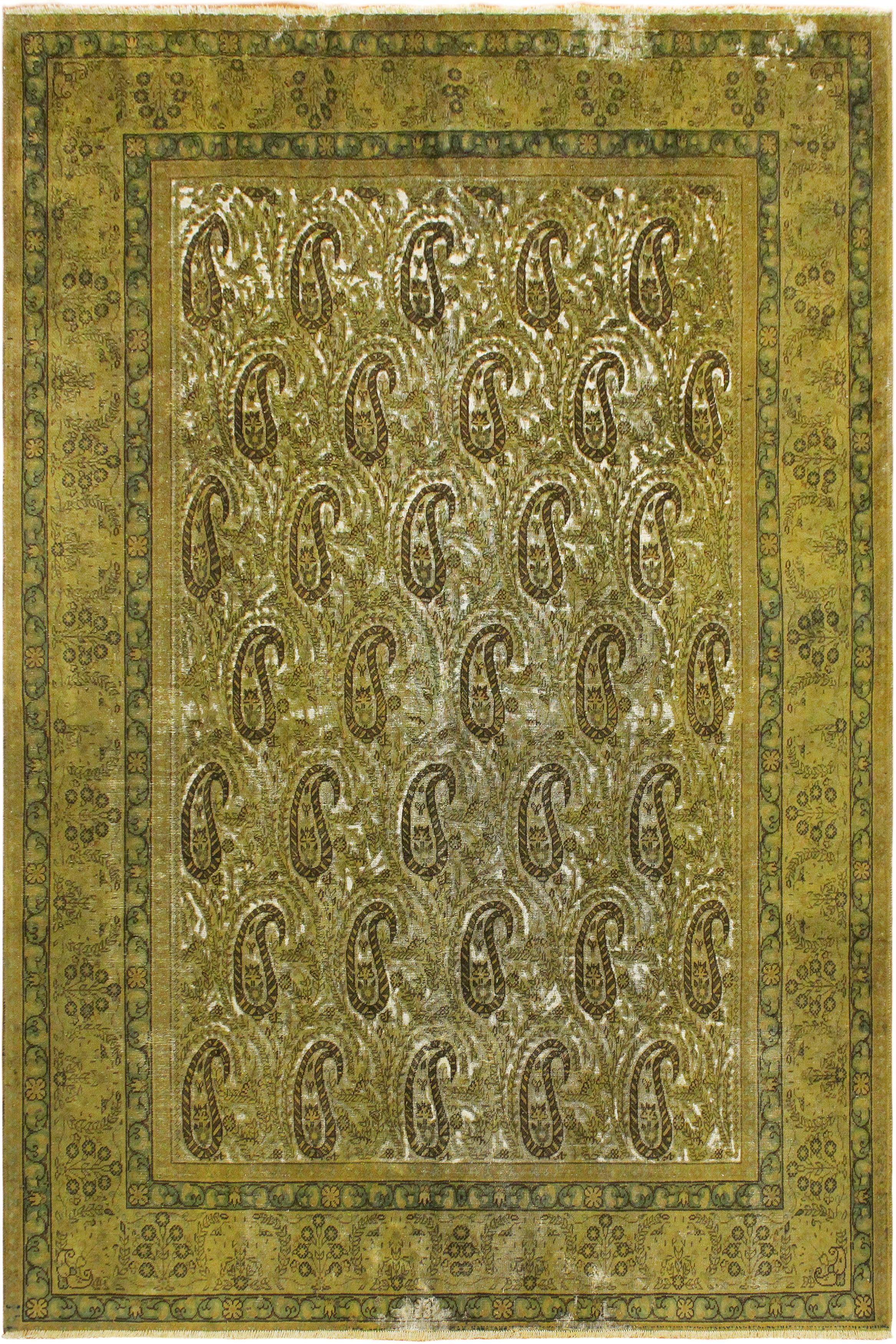 Vintage Distressed Persian Yelena Green/Brown Wool Rug - 7'8'' x 9'9''
