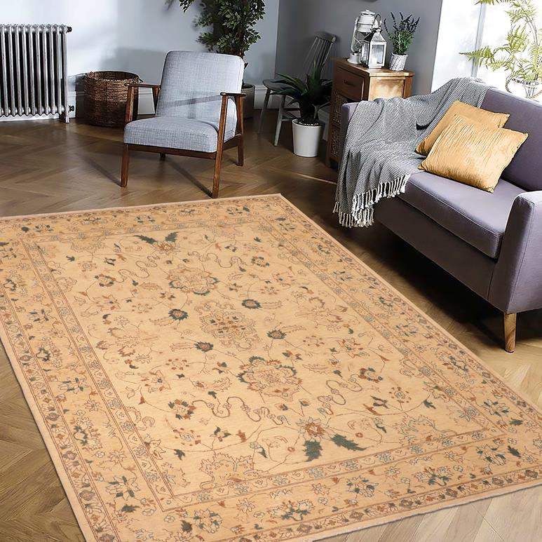 Shabby Chic Ziegler Exie Tan Green Hand-Knotted Wool Rug - 8'0'' x 10'2''