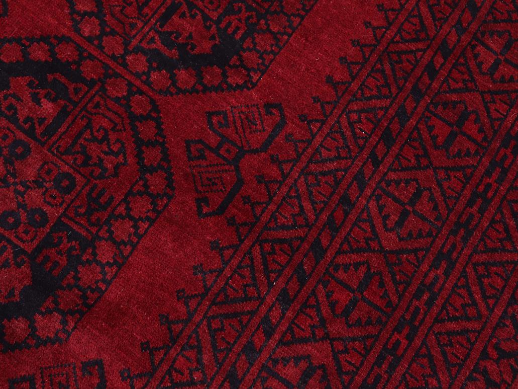 Elegant Khal Mohammadi rugs made by skilled artisans of Northern Afghanistan using premium quality hand-spun wool and vegetable dyes are an exquisite addition to any decor. Meticulously hand-knotted using the age-old techniques of traditional Turkish or Ghiordes knots, these chic Khal Mohammadi rugs feature intricate designs with a warm color palette of deep reds, dark blues, and luxurious browns. The long-lasting mesmerizing hue in Khal Mohammadi rugs comes from the vegetable dyes made from madder root, indigo, and walnut husks that become more enchanting over time. The Biljilk Khal Mohammadi design showcases stylized floral motifs and a geometric pattern that draws inspiration from nature. The unique weaving style developed by influential rug weaver Khal Mohammad has resulted in rich colors, intricate patterns, and exceptional craftsmanship. Despite the scarcity of specific details about his early life and introduction to the craft, his techniques and designs have made an indelible mark on the world of rug craftsmanship, making these rugs a testament to his unparalleled skill and innovation. The intricate design and the dark hues exude an aura of dreamy serenity and undeniable luxury that will elevate the ambiance of any room.