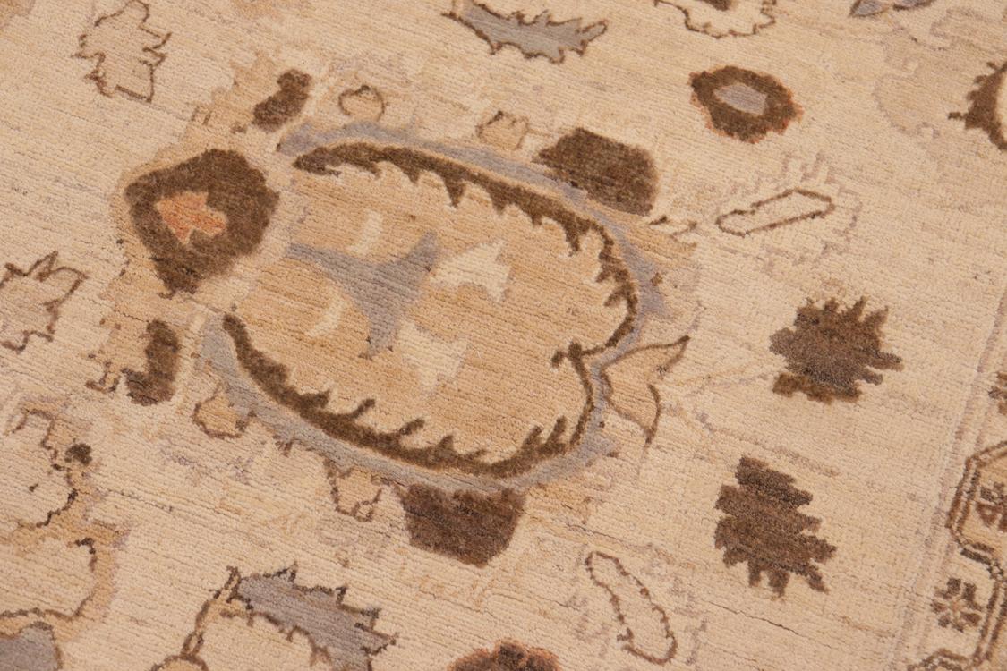 Enhance the ambiance of your home with this magnificent Persian-influenced Turkish hand-knotted rug made by skilled artisans capable of creating the most exceptional vegetable dyes and hand-spun wool. This exquisite handmade rug is a one-of-a-kind Peshawar Kafkaz, otherwise identified as Chobi, Chobi Peshawar, Oushak, or Ziegler rug. These handmade rugs are crafted in Pakistan utilizing superior-quality wool imported from Australia, New Zealand, and Korea in two types of weaves: the Persian weave and the Mori weave. This rug is meticulously crafted by hand using the finest natural vegetable dyes extracted from local plants. The artisans use a blend of hand-spun local and fine merino wool, resulting in a rug with a compelling texture, higher lanolin content, and longer staple. The artisans occasionally incorporate natural or artificial silk into the pile to enhance specific motifs. The finished product is an awe-inspiring flawless design execution and an understated palette that exudes elegance. Contemporary Peshawar rugs draw inspiration from antique Persian designs and feature modern design motifs with vibrant color tones. Hand-knotted with all-natural dyes, resulting in a unique abrash effect and subtle color variations in the pile. Peshawar rugs are known for their stunning and vibrant colors, which were achieved through a process inspired by antique methods. The rug's pile is meticulously trimmed to a moderate thickness and then stone-washed and sun-dried, resulting in a natural sheen and pleasing color tones. Transform the ambiance of your room into a luxurious haven with this gorgeous rug featuring a beautiful color palette. This stunning rug features an intricate oriental design that showcases royalty and seamlessly complements any decor. Its hand-knotted construction and natural fibers provide a soft and comfortable feel underfoot, making it the perfect addition to any room.