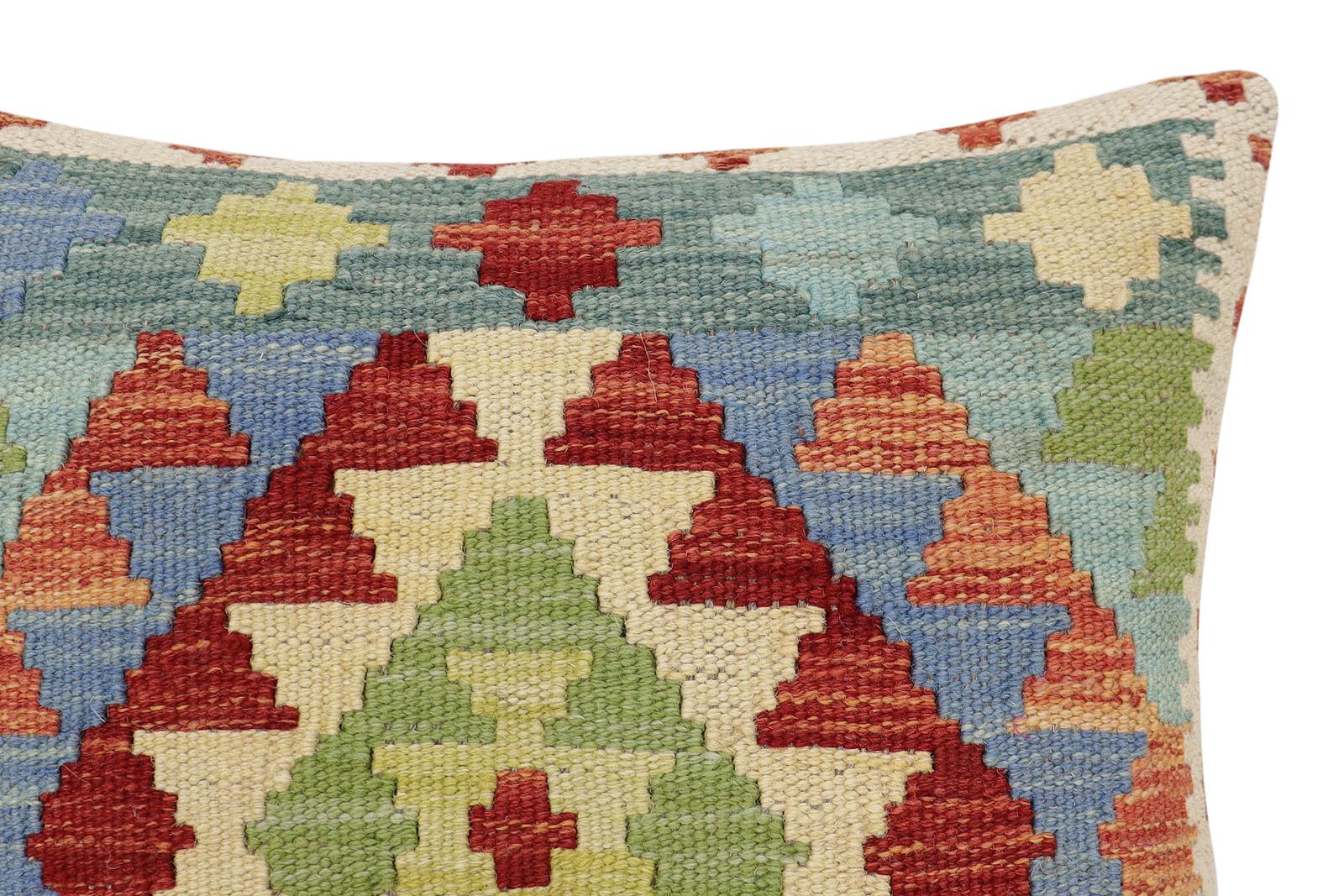 Embellish your home with this timeless casual chic handmade Southwestern Kilim throw pillow covers made with wool and cotton. Constructed on a loom by Nomad Turkman people with hand-spun wool and Natural Vegetable dyes these beautiful Kilim pillow covers are known for their beautiful repetitive geometrical, naturalistic floral, and traditional patterns yet still giving it a modern look. Masterfully artisan-crafted on traditional Kilim looms with a contemporary fashion palette producing bold intricate sharp patterns making them a standout piece in any decor.