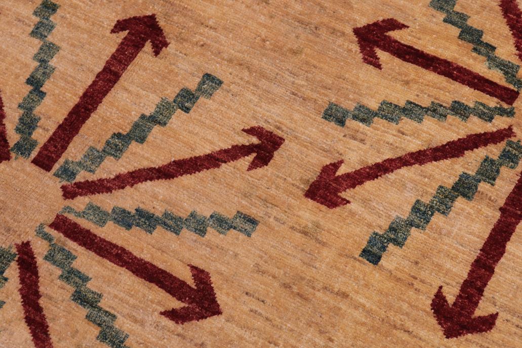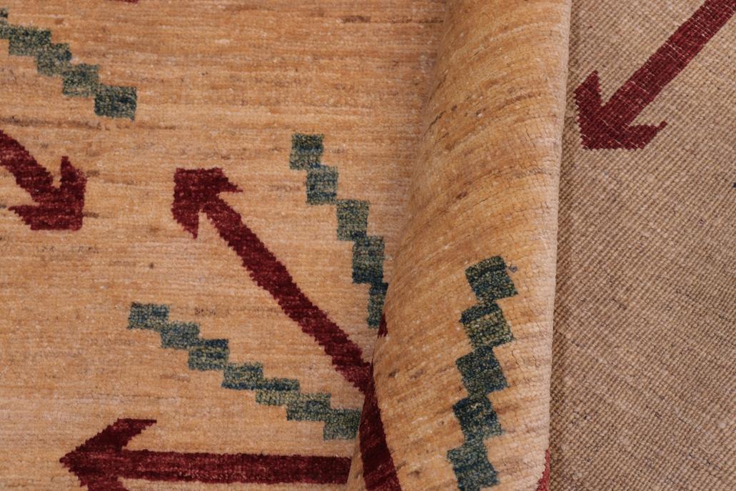 Enhance the ambiance of your home with this magnificent Persian-influenced Turkish hand-knotted rug made by skilled artisans capable of creating the most exceptional vegetable dyes and hand-spun wool. This exquisite handmade rug is a one-of-a-kind Peshawar Kafkaz, otherwise identified as Chobi, Chobi Peshawar, Oushak, or Ziegler rug. These handmade rugs are crafted in Pakistan utilizing superior-quality wool imported from Australia, New Zealand, and Korea in two types of weaves: the Persian weave and the Mori weave. This rug is meticulously crafted by hand using the finest natural vegetable dyes extracted from local plants. The artisans use a blend of hand-spun local and fine merino wool, resulting in a rug with a compelling texture, higher lanolin content, and longer staple. The artisans occasionally incorporate natural or artificial silk into the pile to enhance specific motifs. The finished product is an awe-inspiring flawless design execution and an understated palette that exudes elegance. Contemporary Peshawar rugs draw inspiration from antique Persian designs and feature modern design motifs with vibrant color tones. Hand-knotted with all-natural dyes, resulting in a unique abrash effect and subtle color variations in the pile. Peshawar rugs are known for their stunning and vibrant colors, which were achieved through a process inspired by antique methods. The rug's pile is meticulously trimmed to a moderate thickness and then stone-washed and sun-dried, resulting in a natural sheen and pleasing color tones. Transform the ambiance of your room into a luxurious haven with this gorgeous rug featuring a beautiful color palette. This stunning rug features an intricate oriental design that showcases royalty and seamlessly complements any decor. Its hand-knotted construction and natural fibers provide a soft and comfortable feel underfoot, making it the perfect addition to any room.