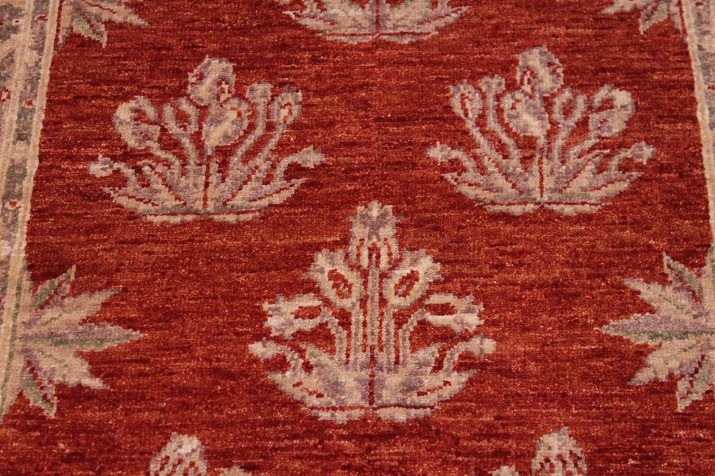 Enhance the ambiance of your home with this magnificent Persian-influenced Turkish hand-knotted rug made by skilled artisans capable of creating the most exceptional vegetable dyes and hand-spun wool. This exquisite handmade rug is a one-of-a-kind Peshawar Kafkaz, otherwise identified as Chobi, Chobi Peshawar, Oushak, or Ziegler rug. These handmade rugs are crafted in Pakistan utilizing superior-quality wool imported from Australia, New Zealand, and Korea in two types of weaves: the Persian weave and the Mori weave. This rug is meticulously crafted by hand using the finest natural vegetable dyes extracted from local plants. The artisans use a blend of hand-spun local and fine merino wool, resulting in a rug with a compelling texture, higher lanolin content, and longer staple. The artisans occasionally incorporate natural or artificial silk into the pile to enhance specific motifs. The finished product is an awe-inspiring flawless design execution and an understated palette that exudes elegance. Contemporary Peshawar rugs draw inspiration from antique Persian designs and feature modern design motifs with vibrant color tones. Hand-knotted with all-natural dyes, resulting in a unique abrash effect and subtle color variations in the pile. Peshawar rugs are known for their stunning and vibrant colors, which were achieved through a process inspired by antique methods. The rug's pile is meticulously trimmed to a moderate thickness and then stone-washed and sun-dried, resulting in a natural sheen and pleasing color tones. Transform the ambiance of your room into a luxurious haven with this gorgeous rug featuring a beautiful color palette. This stunning rug features an intricate oriental design that showcases royalty and seamlessly complements any decor. Its hand-knotted construction and natural fibers provide a soft and comfortable feel underfoot, making it the perfect addition to any room.
