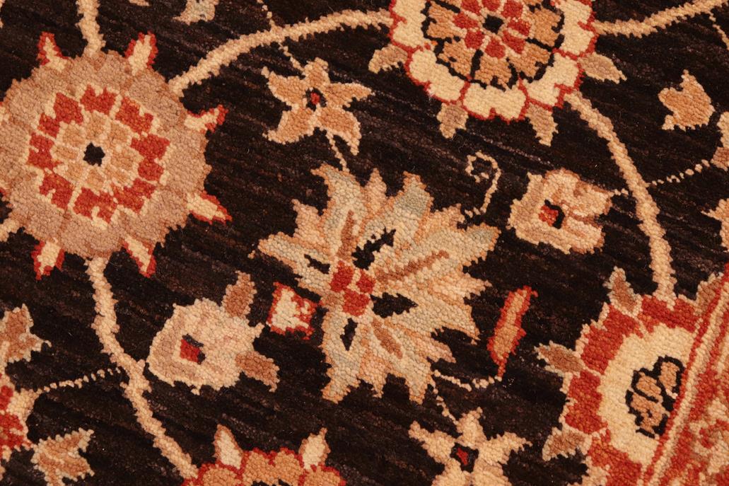 Enhance the ambiance of your home with this magnificent Persian-influenced Turkish hand-knotted rug made by skilled artisans capable of creating the most exceptional vegetable dyes and hand-spun wool. This exquisite handmade rug is a one-of-a-kind Peshawar Kafkaz, otherwise identified as Chobi, Chobi Peshawar, Oushak, or Ziegler rug. These handmade rugs are crafted in Pakistan utilizing superior-quality wool imported from Australia, New Zealand, and Korea in two types of weaves: the Persian weave and the Mori weave. This rug is meticulously crafted by hand using the finest natural vegetable dyes extracted from local plants. The artisans use a blend of hand-spun local and fine merino wool, resulting in a rug with a compelling texture, higher lanolin content, and longer staple. The artisans occasionally incorporate natural or artificial silk into the pile to enhance specific motifs. The finished product is an awe-inspiring flawless design execution and an understated palette that exudes elegance. Contemporary Peshawar rugs draw inspiration from antique Persian designs and feature modern design motifs with vibrant color tones. Hand-knotted with all-natural dyes, resulting in a unique abrash effect and subtle color variations in the pile. Peshawar rugs are known for their stunning and vibrant colors, which were achieved through a process inspired by antique methods. The rug's pile is meticulously trimmed to a moderate thickness and then stone-washed and sun-dried, resulting in a natural sheen and pleasing color tones. Transform the ambiance of your room into a luxurious haven with this gorgeous rug featuring a beautiful color palette. This stunning rug features an intricate oriental design that showcases royalty and seamlessly complements any decor. Its hand-knotted construction and natural fibers provide a soft and comfortable feel underfoot, making it the perfect addition to any room.