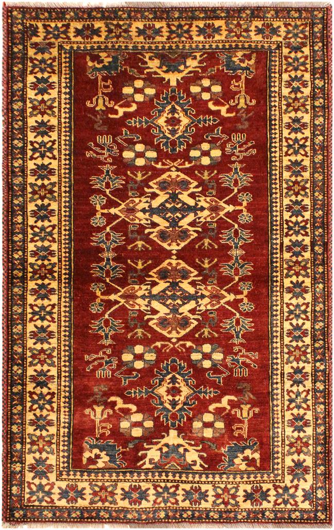 Rustic Super Kazak Elouise Red/Gold Wool Rug - 4'0'' x 5'7''