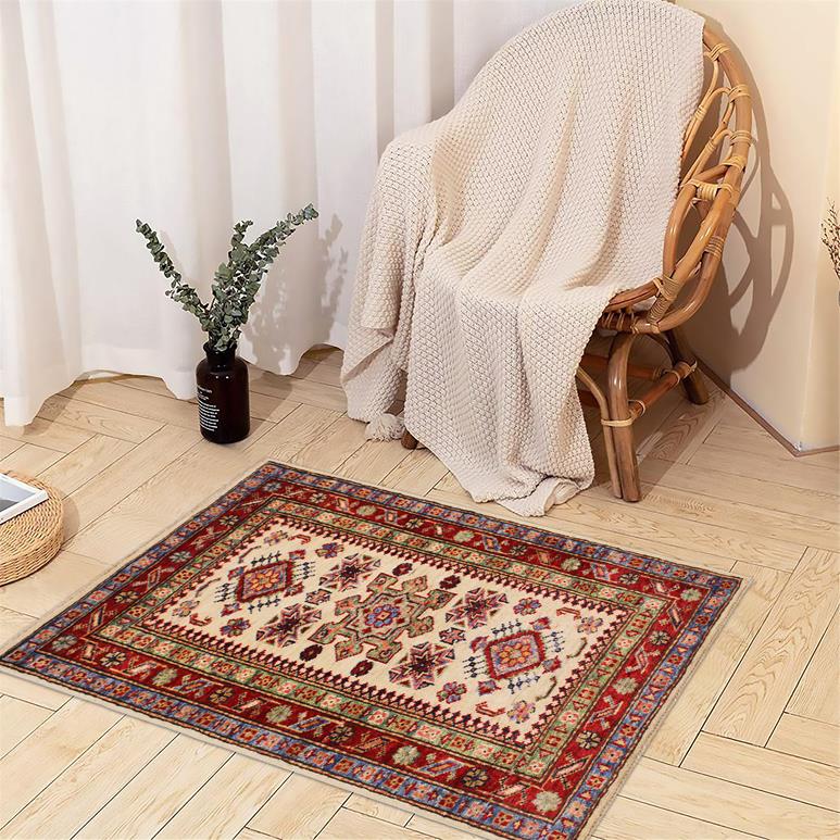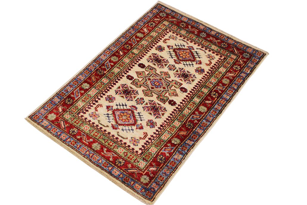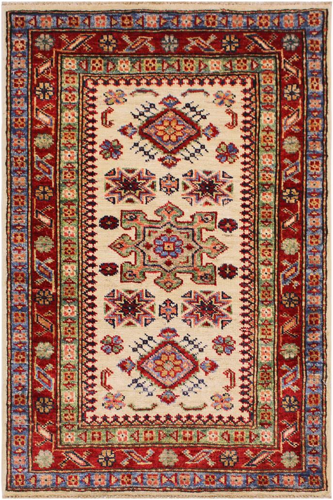 Tribal Super Kazak Geraldo Beige/Red Wool Rug - 2'0'' x 2'11''