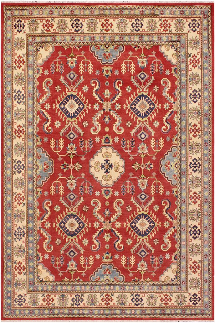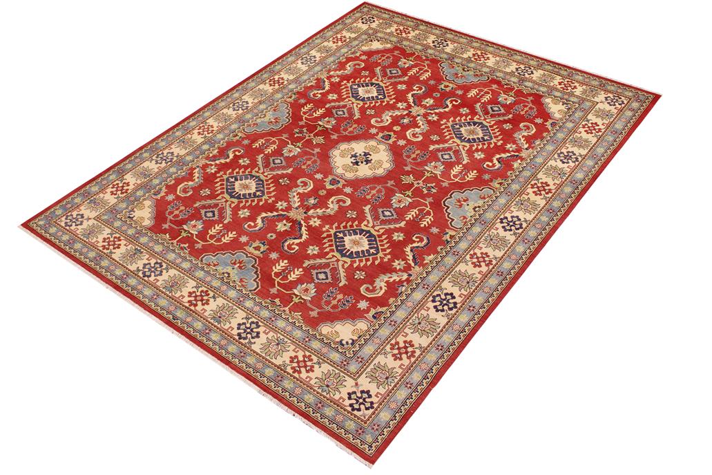 Rustic Kazak Manual Red/Beige Wool Rug - 8'11'' x 11'9''