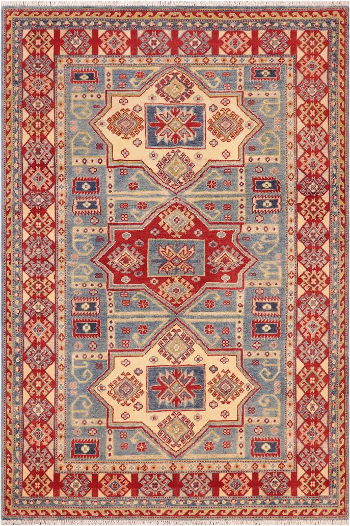 Tribal Kazak Aaron Light Blue/Beige Wool Rug - 4'9'' x 6'7''