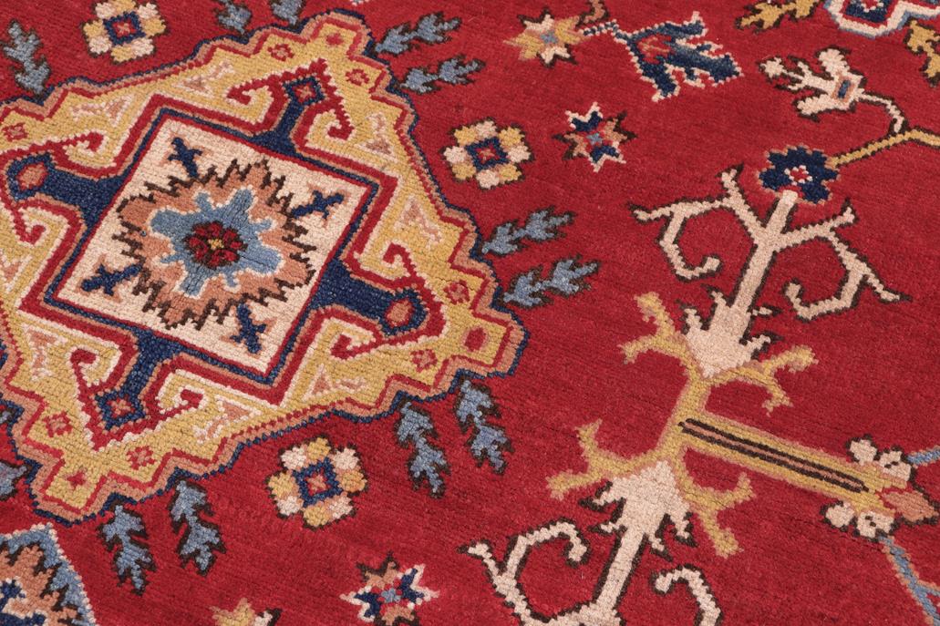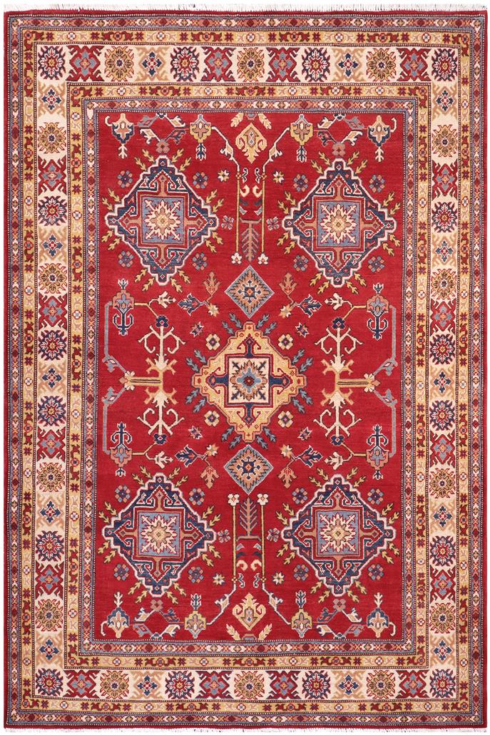 Southwestern Kazak Strain Red/Beige Wool Rug - 5'8'' x 7'9''