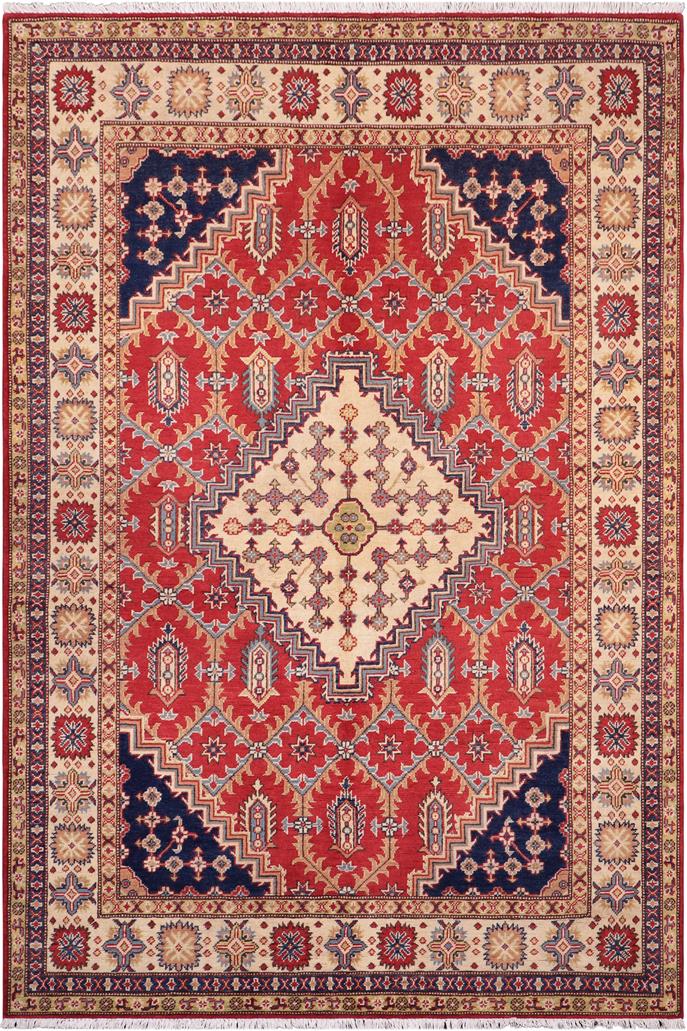 Tribal Kazak Gerry Red/Beige Wool Rug - 5'8'' x 7'10''