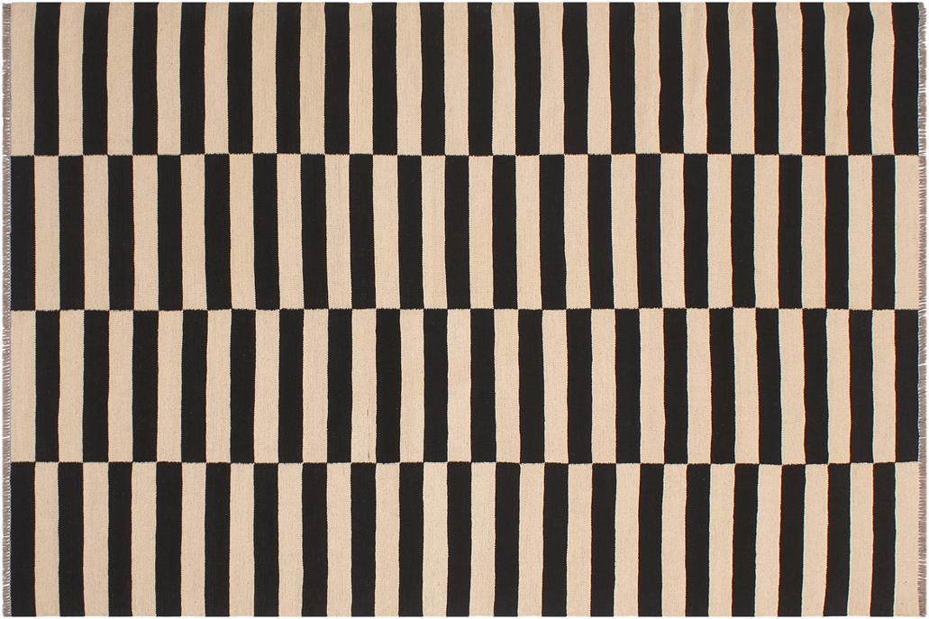 Elevate the elegance of your home with this stunning hand-woven tribal Kilim wool rug. Meticulously crafted on a loom by the Nomad Turkman people using hand-spun wool and 100% natural vegetable dyes, these rugs are recognized for their repetitive geometric patterns, incorporating naturalistic floral and traditional designs. The contemporary fashion palette results in bold, sharp patterns that are incredibly versatile, as the pattern is the same on both sides. These reversible rugs feature a lighter shade on one side and brighter colors on the other, providing versatility according to preference. These unique rugs are made by knotting short strands of different colors onto the warps and securing them by tightly pressing the wefts. The designs are created by interweaving the various colored wefts and warps. Kilims are known for their exceptional durability and versatility, making them truly unique rugs.