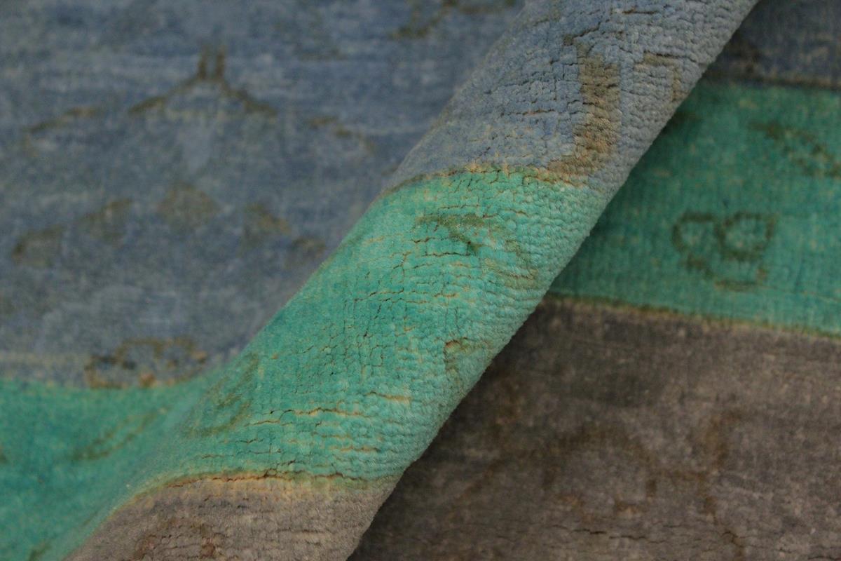 Masterfully hand-knotted by skilled artists, this over dyed hand knotted rug highlights careful attention to detail and color to create a remarkable chromatic composition. Each rug is hand knotted using centuries old techniques and mellowed down by the natural energy of the sun. While retaining the original design each rug is given a unique artistic composition by over dying and washing each rug in remarkable color palette to produce a bolder, brighter, modern and saturated look. The modern inspired look with rich, luscious detailing, vibrant feel and a show-stopping palette with saturated colors provides an unexpected decor twist. The historic and timeless appearance of this collection offers an exquisite quality of one-of-a-kind artistic rugs.