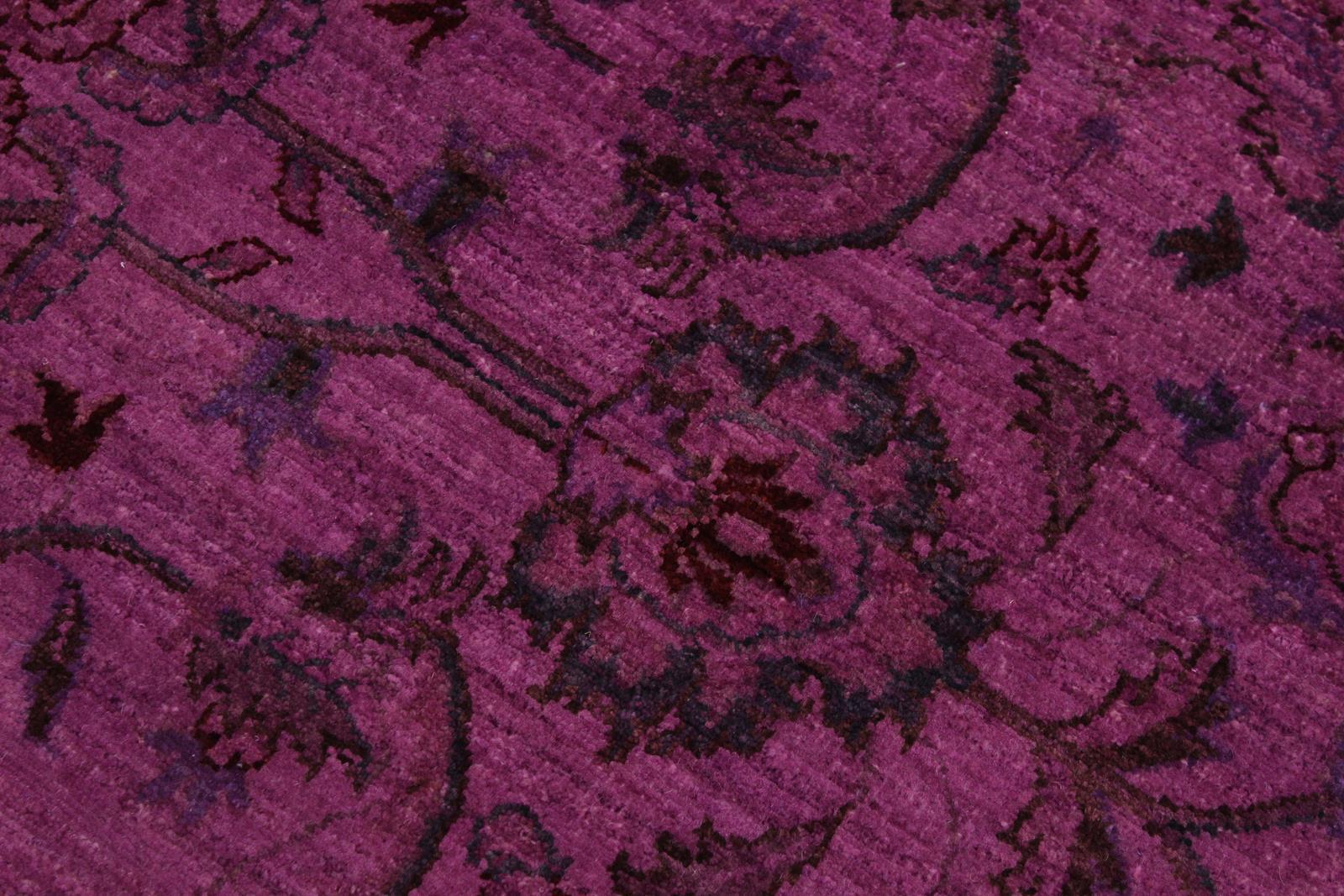 Masterfully hand-knotted by skilled artists, this over dyed hand knotted rug highlights careful attention to detail and color to create a remarkable chromatic composition. Each rug is hand knotted using centuries old techniques and mellowed down by the natural energy of the sun. While retaining the original design each rug is given a unique artistic composition by over dying and washing each rug in remarkable color palette to produce a bolder, brighter, modern and saturated look. The modern inspired look with rich, luscious detailing, vibrant feel and a show-stopping palette with saturated colors provides an unexpected decor twist. The historic and timeless appearance of this collection offers an exquisite quality of one-of-a-kind artistic rugs.