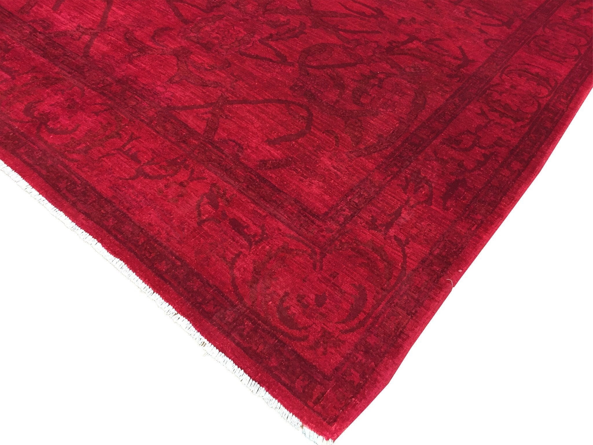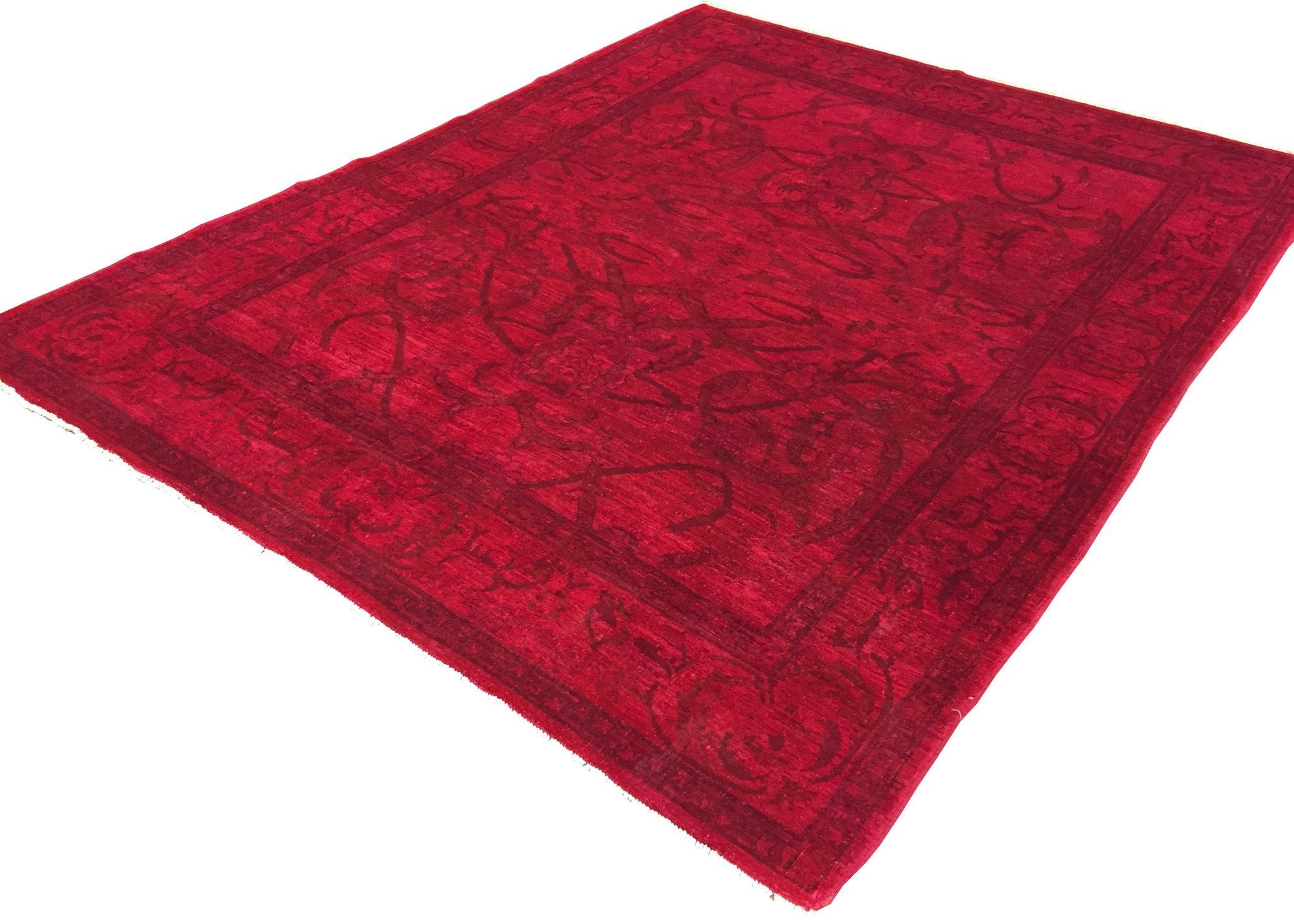 Masterfully hand-knotted by skilled artists over the course of a year, this over dyed rug highlights careful attention to detail and color to create a remarkable chromatic composition. Each rug is hand knotted using centuries old techniques and mellowed down by the natural energy of the sun. While retaining the original design each rug is given a unique artistic composition by over dying and washing each rug in remarkable color palette to produce a bolder, brighter, modern and saturated look. The modern inspired look with rich, luscious detailing, vibrant feel and a show-stopping palette with saturated colors provides an unexpected décor twist. The historic and timeless appearance of this collection offers an exquisite quality of one-of-a-kind artistic rugs.