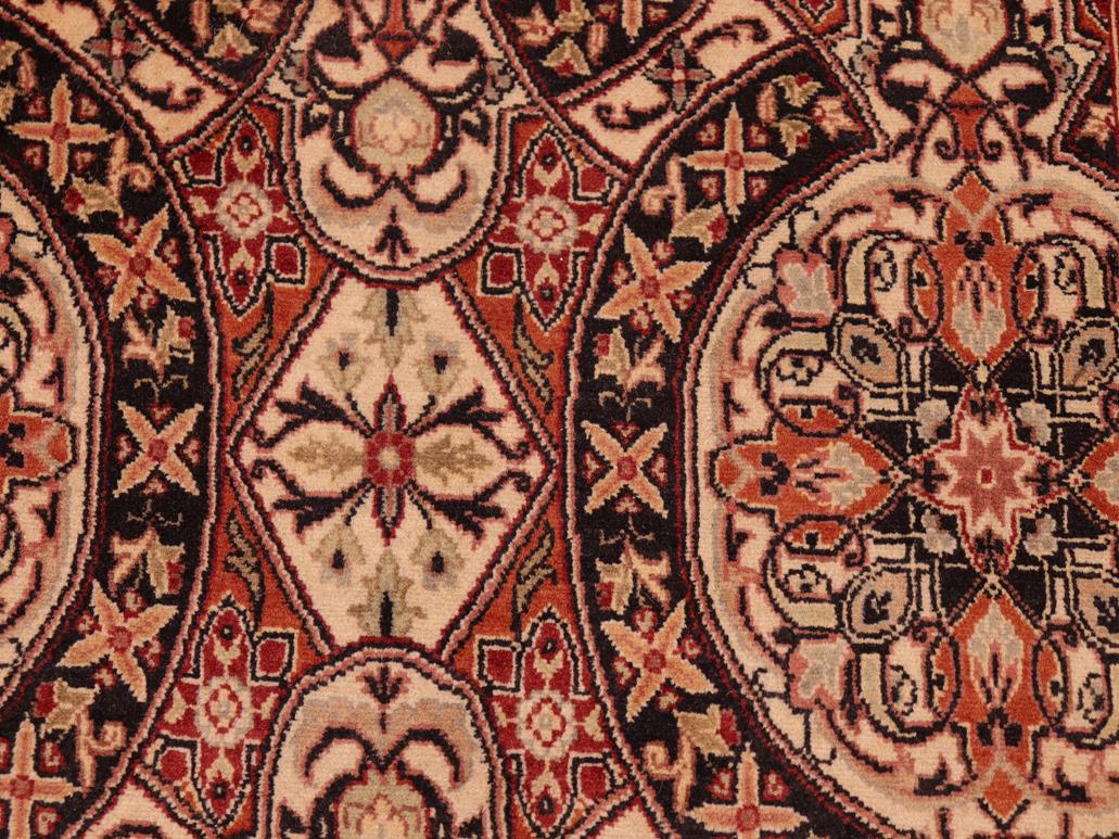 Designed with mesmerizing intricacy and gorgeous color palette, this hand-knotted masterpiece demonstrates the beauty and electrifying thrill of Pak Persian art. These meticulously hand-knotted Pak-Persian rug is made with pure wool and features breathtaking traditional, transitional, and tribal designs in bold luxurious color pallets. Known for their intricate designs these rugs are a reproduction of Persian rugs, made in Pakistan with unique Mughal designs. Made by master weavers using the same Persian texture, design and dying technique, we wanted to produce the most significant manifestation of Persian art, life, and culture. This rug is most famous for its exceptional quality, incredible designs, patterns, and vibrant rich color. Pak-Persian rugs made with Persian weave with high knot counts, which enables the high intricacy and detail found in the patterns are also referred to as "State of art", each color adds a rich beautiful detail in the artwork of this rug. The design, color, and beautiful chromatic composition with a vibrant sheen with intricate designs, exude beauty, elegance, and quality make this rug a masterpiece of its own.