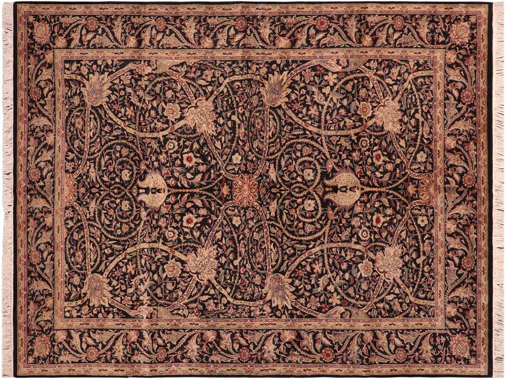 Ashad Pak Persian Edward Black/Green Wool Rug - 6'2'' x 9'0''