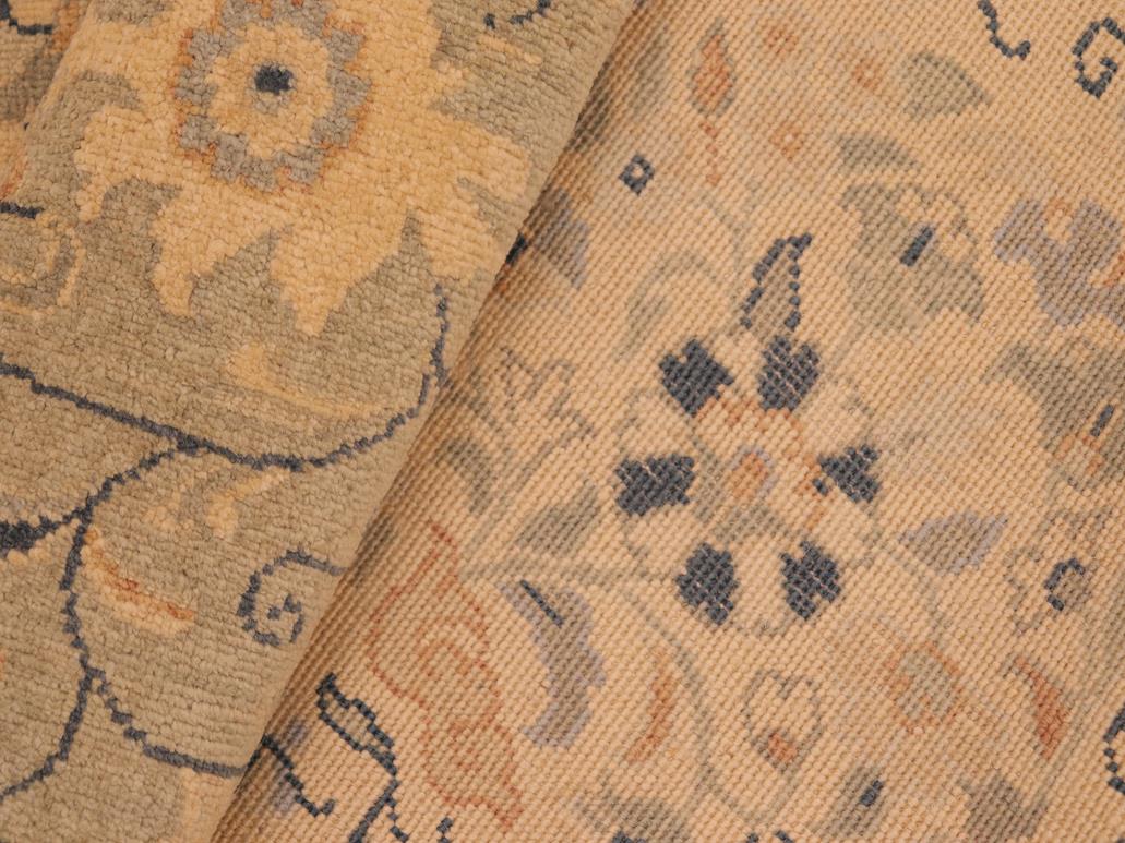 Turkish Knotted Istanbul Michele Tan/Green Wool Rug - 6'2'' x 9'1''