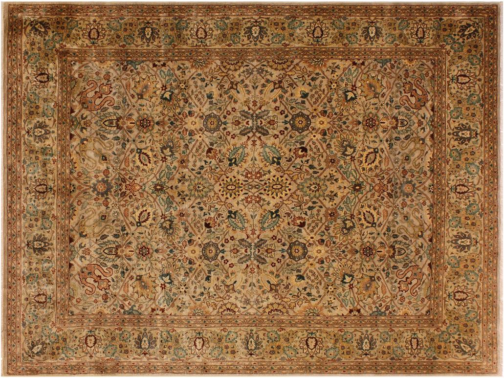 Turkish Knotted Istanbul Bessie Tan/ Tan Wool Rug - 7'11'' x 10'0''