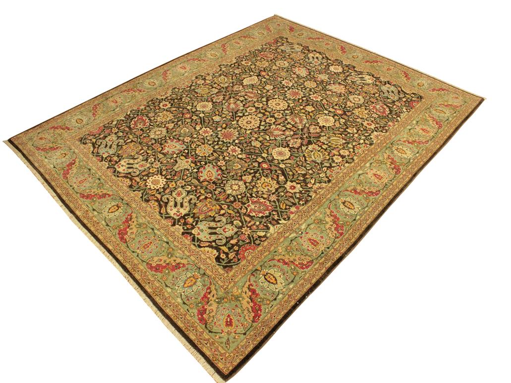 Turkish Knotted Istanbul Jerry Brown/ Green Wool Rug - 9'3'' x 11'9''
