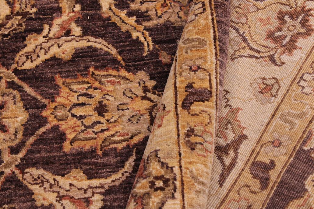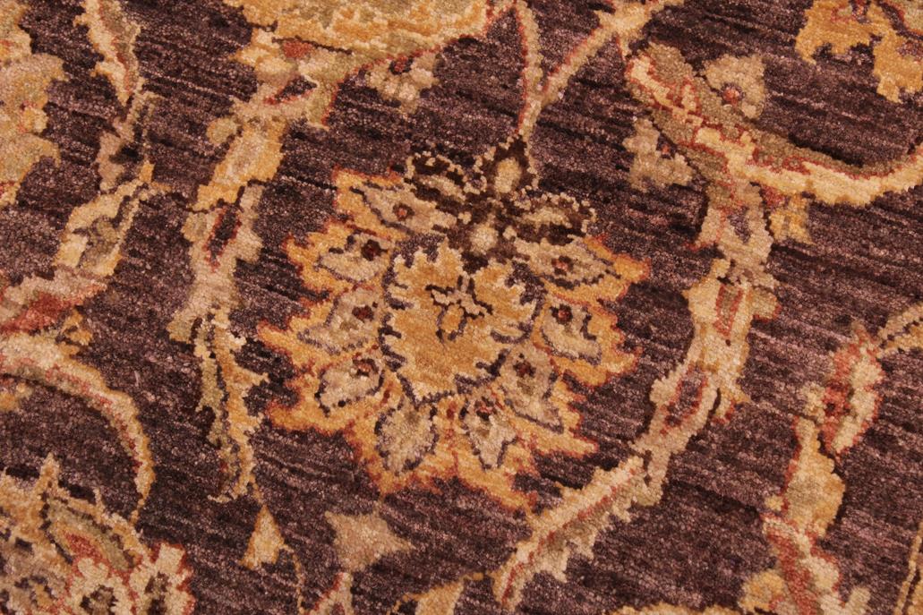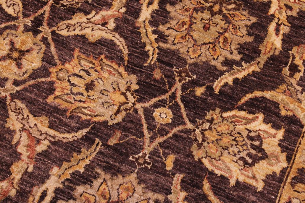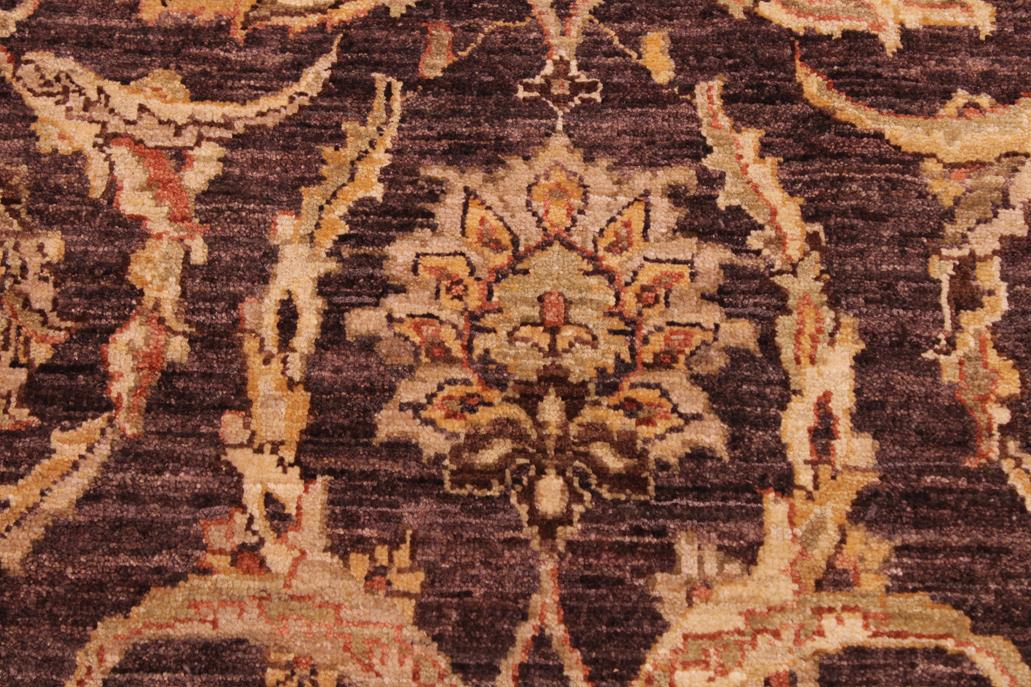 Enhance the ambiance of your home with this magnificent Persian-influenced Turkish hand-knotted rug made by skilled artisans capable of creating the most exceptional vegetable dyes and hand-spun wool. This exquisite handmade rug is a one-of-a-kind Peshawar Kafkaz, otherwise identified as Chobi, Chobi Peshawar, Oushak, or Ziegler rug. These handmade rugs are crafted in Pakistan utilizing superior-quality wool imported from Australia, New Zealand, and Korea in two types of weaves: the Persian weave and the Mori weave. This rug is meticulously crafted by hand using the finest natural vegetable dyes extracted from local plants. The artisans use a blend of hand-spun local and fine merino wool, resulting in a rug with a compelling texture, higher lanolin content, and longer staple. The artisans occasionally incorporate natural or artificial silk into the pile to enhance specific motifs. The finished product is an awe-inspiring flawless design execution and an understated palette that exudes elegance. Contemporary Peshawar rugs draw inspiration from antique Persian designs and feature modern design motifs with vibrant color tones. Hand-knotted with all-natural dyes, resulting in a unique abrash effect and subtle color variations in the pile. Peshawar rugs are known for their stunning and vibrant colors, which were achieved through a process inspired by antique methods. The rug's pile is meticulously trimmed to a moderate thickness and then stone-washed and sun-dried, resulting in a natural sheen and pleasing color tones. Transform the ambiance of your room into a luxurious haven with this gorgeous rug featuring a beautiful color palette. This stunning rug features an intricate oriental design that showcases royalty and seamlessly complements any decor. Its hand-knotted construction and natural fibers provide a soft and comfortable feel underfoot, making it the perfect addition to any room.