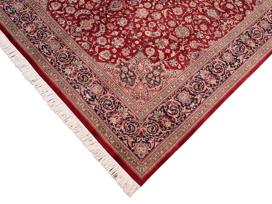 Designed with mesmerizing intricacy and gorgeous color palette, this hand-knotted masterpiece demonstrates the beauty and electrifying thrill of Pak Persian art. These meticulously hand-knotted Pak-Persian rug is made with pure wool and features breathtaking traditional, transitional, and tribal designs in bold luxurious color pallets. Known for their intricate designs these rugs are a reproduction of Persian rugs, made in Pakistan with unique Mughal designs. Made by master weavers using the same Persian texture, design and dying technique, we wanted to produce the most significant manifestation of Persian art, life, and culture. This rug is most famous for its exceptional quality, incredible designs, patterns, and vibrant rich color. Pak-Persian rugs made with Persian weave with high knot counts, which enables the high intricacy and detail found in the patterns are also referred to as "State of art", each color adds a rich beautiful detail in the artwork of this rug. The design, color, and beautiful chromatic composition with a vibrant sheen with intricate designs, exude beauty, elegance, and quality make this rug a masterpiece of its own.
