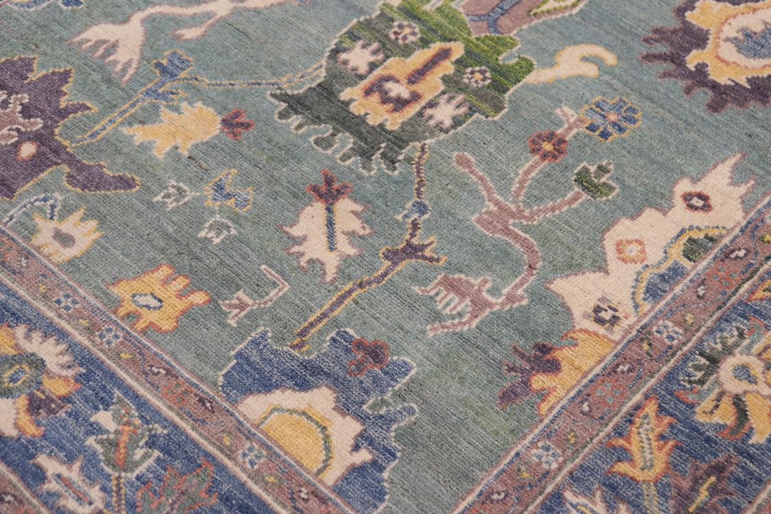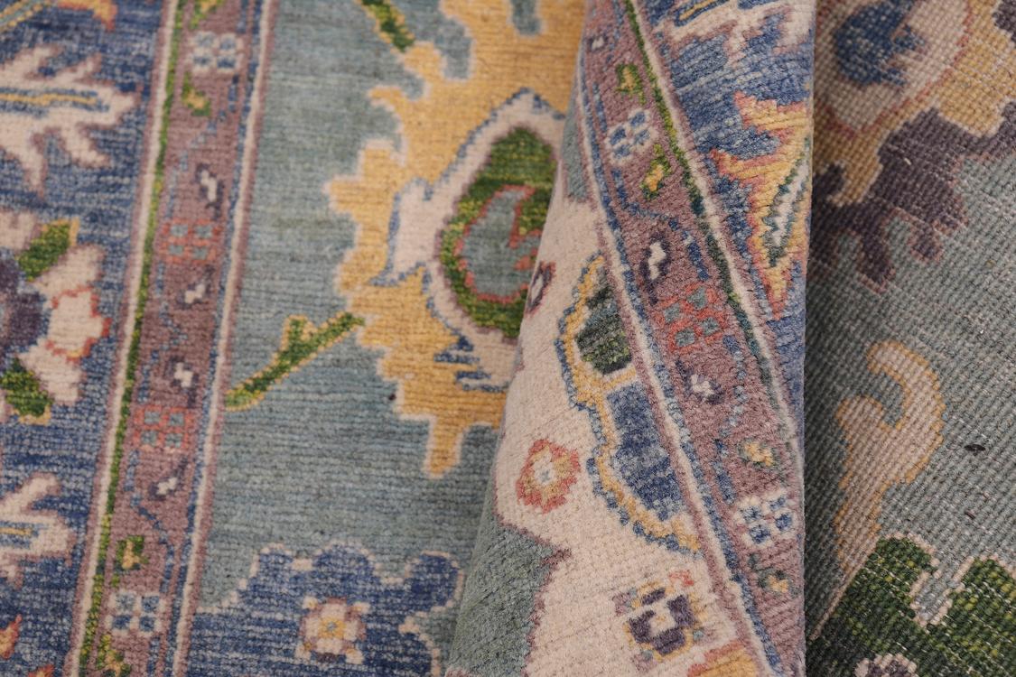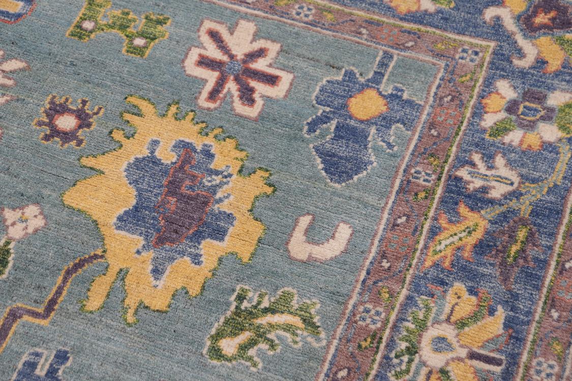 Enhance the ambiance of your home with this magnificent Persian-influenced Turkish hand-knotted rug made by skilled artisans capable of creating the most exceptional vegetable dyes and hand-spun wool. This exquisite handmade rug is a one-of-a-kind Peshawar Kafkaz, otherwise identified as Chobi, Chobi Peshawar, Oushak, or Ziegler rug. These handmade rugs are crafted in Pakistan utilizing superior-quality wool imported from Australia, New Zealand, and Korea in two types of weaves: the Persian weave and the Mori weave. This rug is meticulously crafted by hand using the finest natural vegetable dyes extracted from local plants. The artisans use a blend of hand-spun local and fine merino wool, resulting in a rug with a compelling texture, higher lanolin content, and longer staple. The artisans occasionally incorporate natural or artificial silk into the pile to enhance specific motifs. The finished product is an awe-inspiring flawless design execution and an understated palette that exudes elegance. Contemporary Peshawar rugs draw inspiration from antique Persian designs and feature modern design motifs with vibrant color tones. Hand-knotted with all-natural dyes, resulting in a unique abrash effect and subtle color variations in the pile. Peshawar rugs are known for their stunning and vibrant colors, which were achieved through a process inspired by antique methods. The rug's pile is meticulously trimmed to a moderate thickness and then stone-washed and sun-dried, resulting in a natural sheen and pleasing color tones. Transform the ambiance of your room into a luxurious haven with this gorgeous rug featuring a beautiful color palette. This stunning rug features an intricate oriental design that showcases royalty and seamlessly complements any decor. Its hand-knotted construction and natural fibers provide a soft and comfortable feel underfoot, making it the perfect addition to any room.