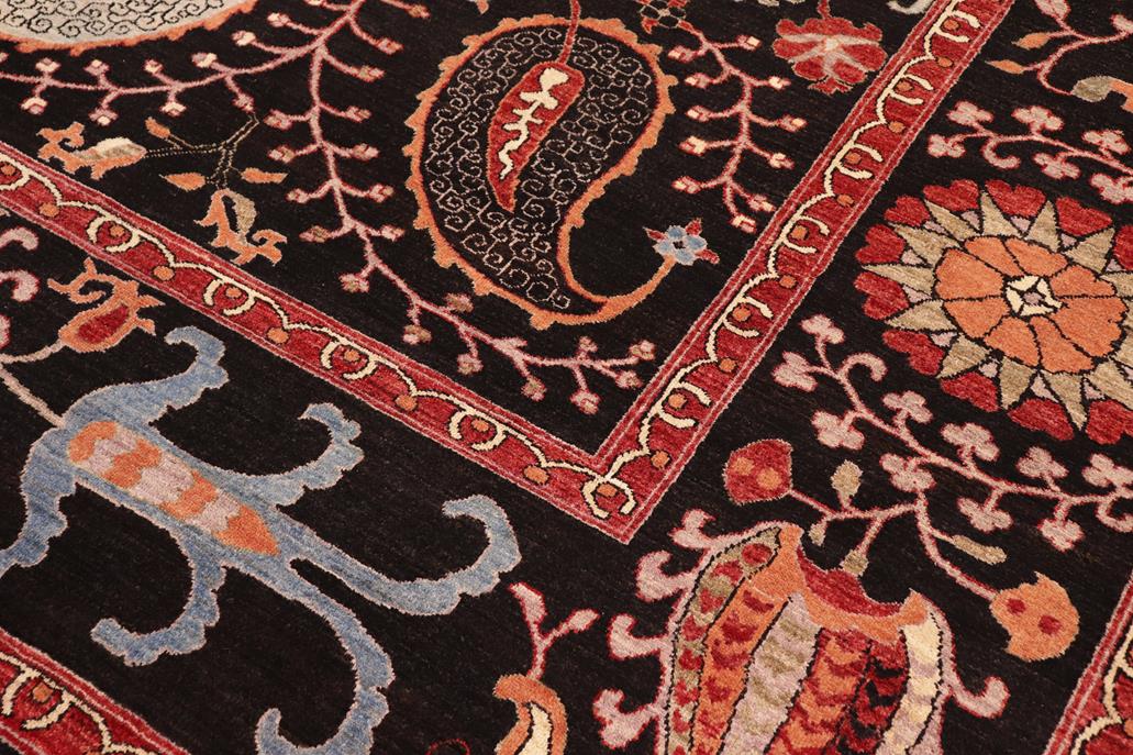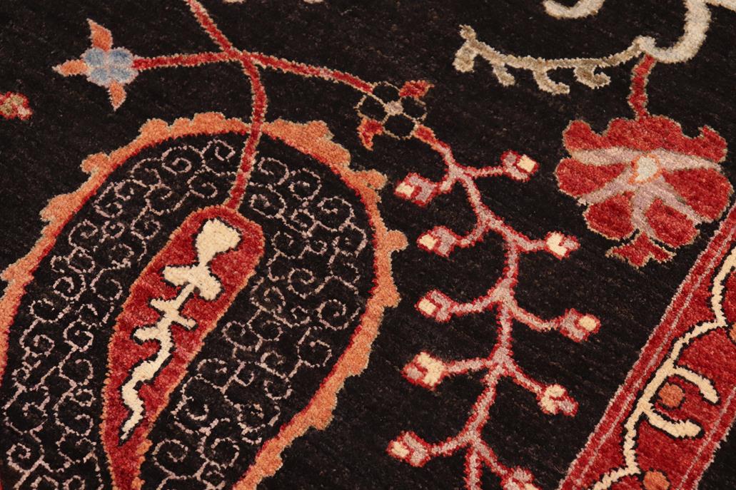 Enhance the ambiance of your home with this magnificent Persian-influenced Turkish hand-knotted rug made by skilled artisans capable of creating the most exceptional vegetable dyes and hand-spun wool. This exquisite handmade rug is a one-of-a-kind Peshawar Kafkaz, otherwise identified as Chobi, Chobi Peshawar, Oushak, or Ziegler rug. These handmade rugs are crafted in Pakistan utilizing superior-quality wool imported from Australia, New Zealand, and Korea in two types of weaves: the Persian weave and the Mori weave. This rug is meticulously crafted by hand using the finest natural vegetable dyes extracted from local plants. The artisans use a blend of hand-spun local and fine merino wool, resulting in a rug with a compelling texture, higher lanolin content, and longer staple. The artisans occasionally incorporate natural or artificial silk into the pile to enhance specific motifs. The finished product is an awe-inspiring flawless design execution and an understated palette that exudes elegance. Contemporary Peshawar rugs draw inspiration from antique Persian designs and feature modern design motifs with vibrant color tones. Hand-knotted with all-natural dyes, resulting in a unique abrash effect and subtle color variations in the pile. Peshawar rugs are known for their stunning and vibrant colors, which were achieved through a process inspired by antique methods. The rug's pile is meticulously trimmed to a moderate thickness and then stone-washed and sun-dried, resulting in a natural sheen and pleasing color tones. Transform the ambiance of your room into a luxurious haven with this gorgeous rug featuring a beautiful color palette. This stunning rug features an intricate oriental design that showcases royalty and seamlessly complements any decor. Its hand-knotted construction and natural fibers provide a soft and comfortable feel underfoot, making it the perfect addition to any room.