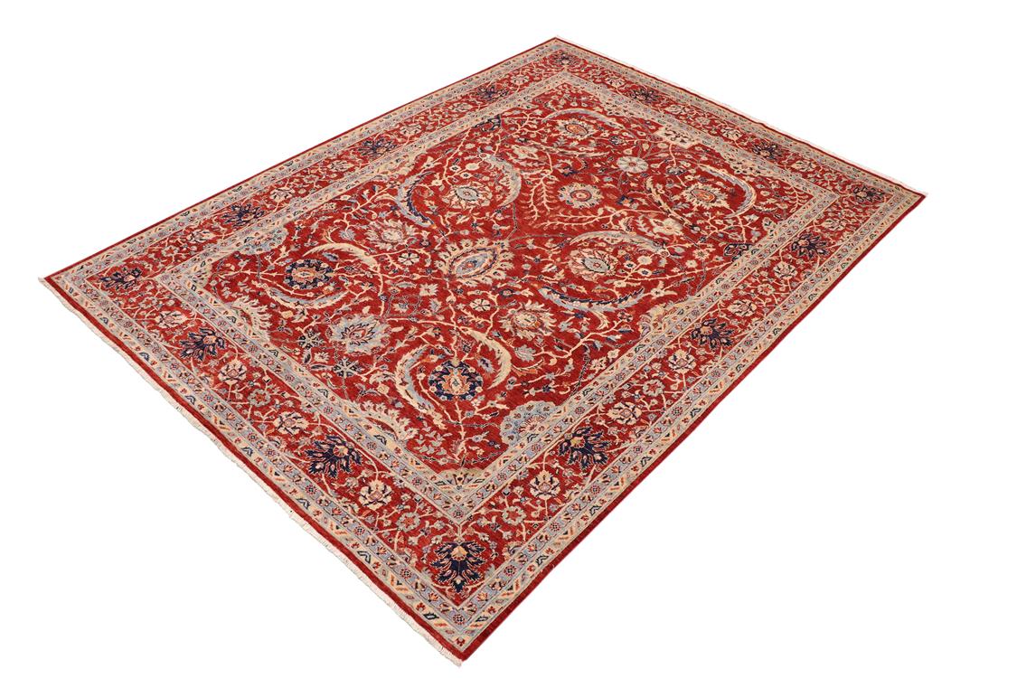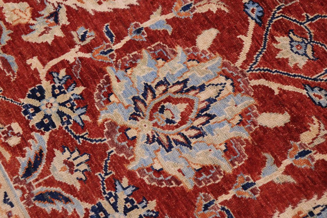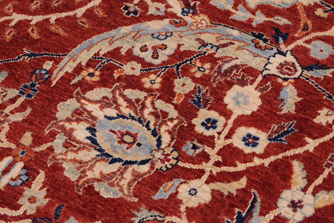 Enhance the ambiance of your home with this magnificent Persian-influenced Turkish hand-knotted rug made by skilled artisans capable of creating the most exceptional vegetable dyes and hand-spun wool. This exquisite handmade rug is a one-of-a-kind Peshawar Kafkaz, otherwise identified as Chobi, Chobi Peshawar, Oushak, or Ziegler rug. These handmade rugs are crafted in Pakistan utilizing superior-quality wool imported from Australia, New Zealand, and Korea in two types of weaves: the Persian weave and the Mori weave. This rug is meticulously crafted by hand using the finest natural vegetable dyes extracted from local plants. The artisans use a blend of hand-spun local and fine merino wool, resulting in a rug with a compelling texture, higher lanolin content, and longer staple. The artisans occasionally incorporate natural or artificial silk into the pile to enhance specific motifs. The finished product is an awe-inspiring flawless design execution and an understated palette that exudes elegance. Contemporary Peshawar rugs draw inspiration from antique Persian designs and feature modern design motifs with vibrant color tones. Hand-knotted with all-natural dyes, resulting in a unique abrash effect and subtle color variations in the pile. Peshawar rugs are known for their stunning and vibrant colors, which were achieved through a process inspired by antique methods. The rug's pile is meticulously trimmed to a moderate thickness and then stone-washed and sun-dried, resulting in a natural sheen and pleasing color tones. Transform the ambiance of your room into a luxurious haven with this gorgeous rug featuring a beautiful color palette. This stunning rug features an intricate oriental design that showcases royalty and seamlessly complements any decor. Its hand-knotted construction and natural fibers provide a soft and comfortable feel underfoot, making it the perfect addition to any room.