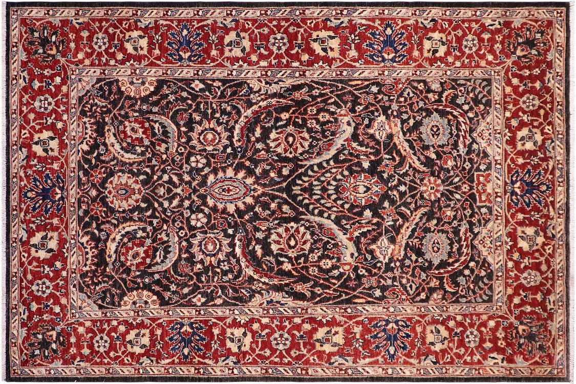 Shabby Chic Ziegler Adelia Black/Red Hand-Knotted Wool Rug - 5'4'' x 8'1''