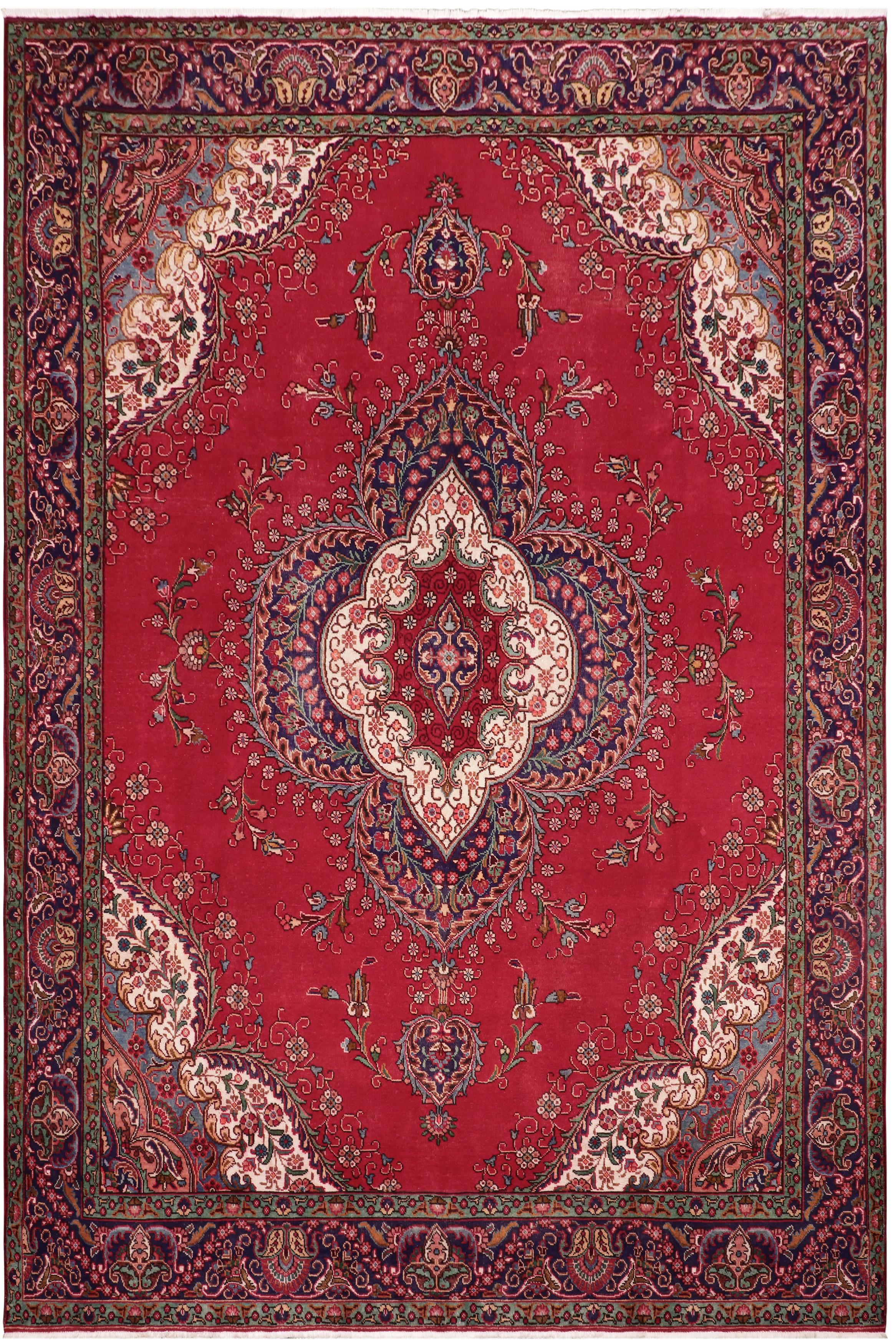 Distressed Antique Tabriz Rose Red/Purple Wool Rug - 9'2'' x 12'7''