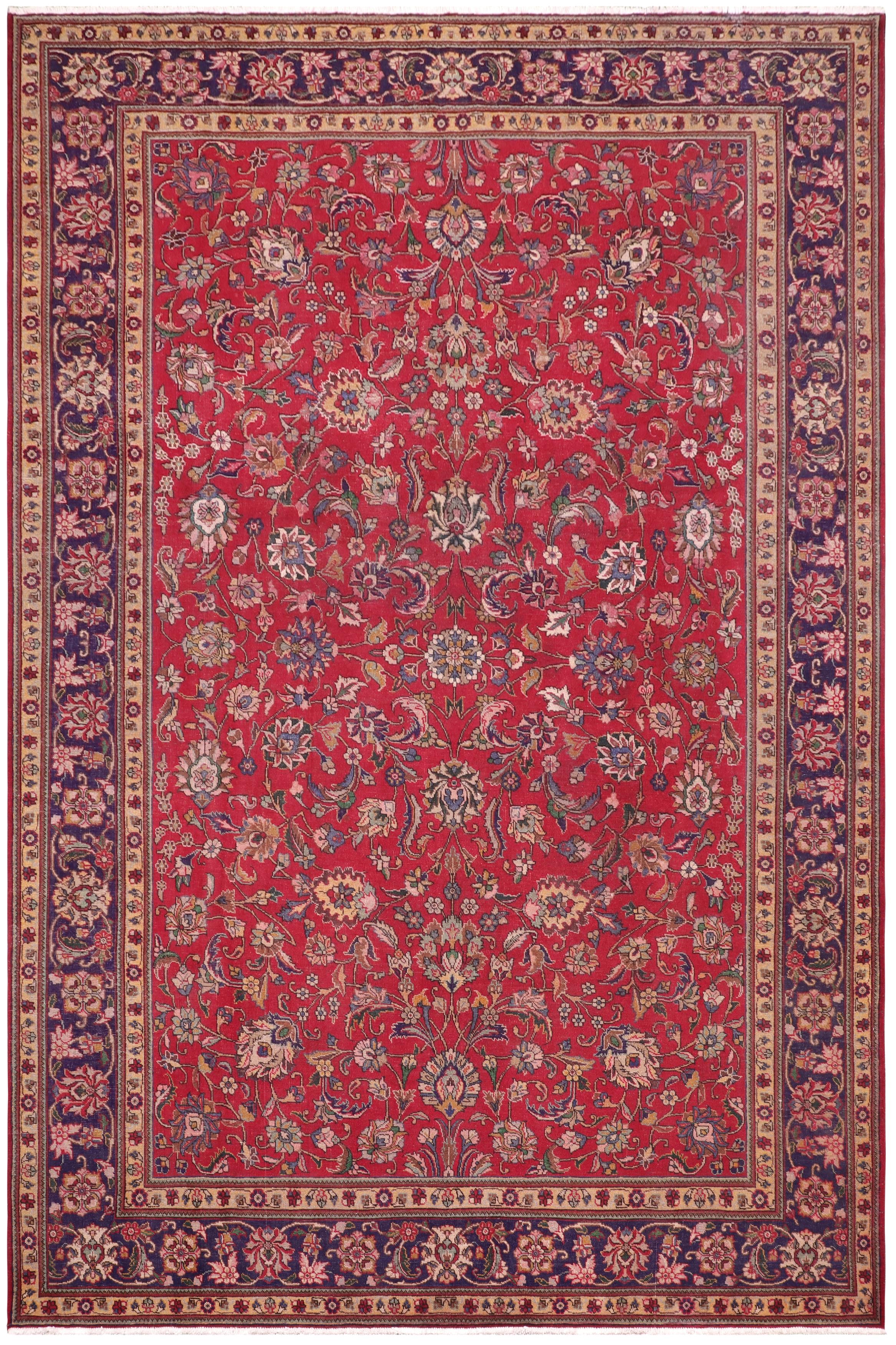 Vintage Antique Kashan Rowe Red/Blue Wool Rug - 8'7'' x 12'7''