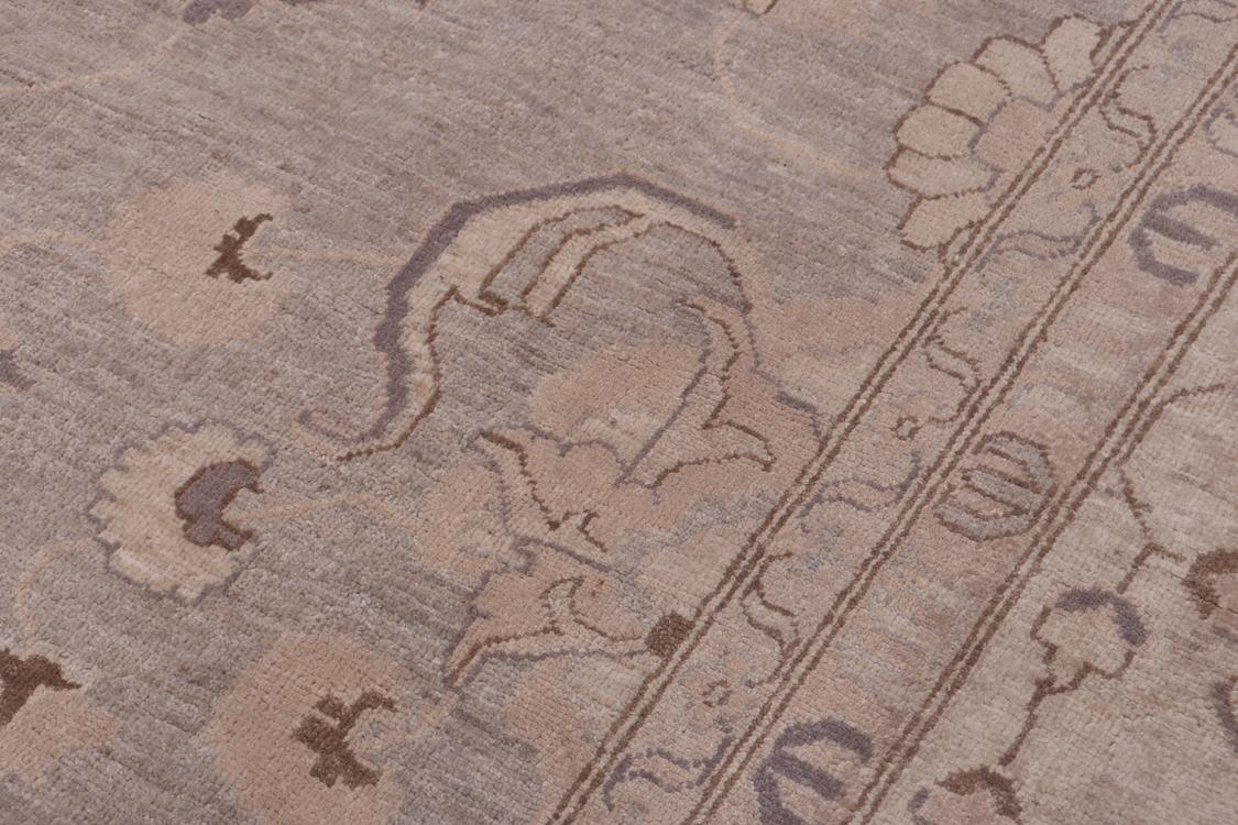 Enhance the ambiance of your home with this magnificent Persian-influenced Turkish hand-knotted rug made by skilled artisans capable of creating the most exceptional vegetable dyes and hand-spun wool. This exquisite handmade rug is a one-of-a-kind Peshawar Kafkaz, otherwise identified as Chobi, Chobi Peshawar, Oushak, or Ziegler rug. These handmade rugs are crafted in Pakistan utilizing superior-quality wool imported from Australia, New Zealand, and Korea in two types of weaves: the Persian weave and the Mori weave. This rug is meticulously crafted by hand using the finest natural vegetable dyes extracted from local plants. The artisans use a blend of hand-spun local and fine merino wool, resulting in a rug with a compelling texture, higher lanolin content, and longer staple. The artisans occasionally incorporate natural or artificial silk into the pile to enhance specific motifs. The finished product is an awe-inspiring flawless design execution and an understated palette that exudes elegance. Contemporary Peshawar rugs draw inspiration from antique Persian designs and feature modern design motifs with vibrant color tones. Hand-knotted with all-natural dyes, resulting in a unique abrash effect and subtle color variations in the pile. Peshawar rugs are known for their stunning and vibrant colors, which were achieved through a process inspired by antique methods. The rug's pile is meticulously trimmed to a moderate thickness and then stone-washed and sun-dried, resulting in a natural sheen and pleasing color tones. Transform the ambiance of your room into a luxurious haven with this gorgeous rug featuring a beautiful color palette. This stunning rug features an intricate oriental design that showcases royalty and seamlessly complements any decor. Its hand-knotted construction and natural fibers provide a soft and comfortable feel underfoot, making it the perfect addition to any room.