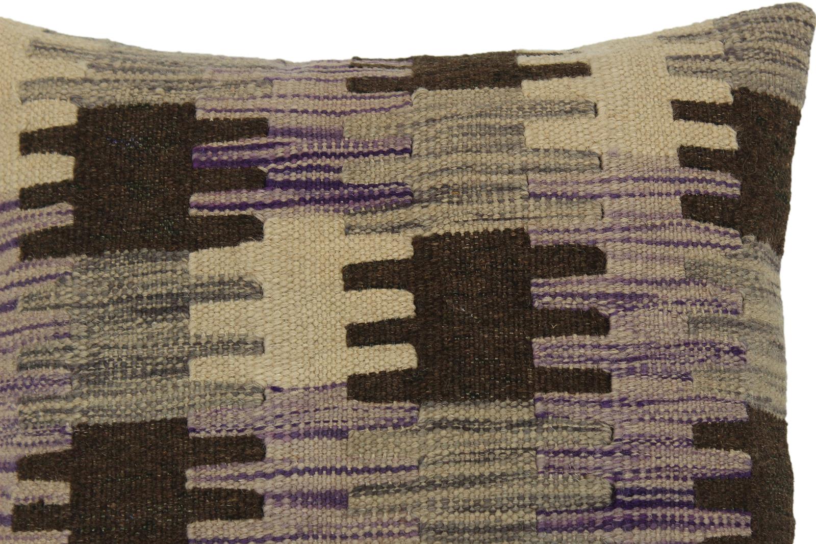 Embellish your home with this timeless casual chic handmade Southwestern Kilim throw pillow covers made with and cotton. Constructed on a loom by Nomad Turkman people with hand spun and Natural Vegetable dyes these beautiful Kilim pillow covers are known for their beautiful repetitive geometrical, naturalistic floral and traditional patterns yet still giving it a modern look. Masterfully artisan-crafted on traditional Kilim looms with a contemporary fashion palette producing bold intricate sharp patterns making them a standout piece in any decor.