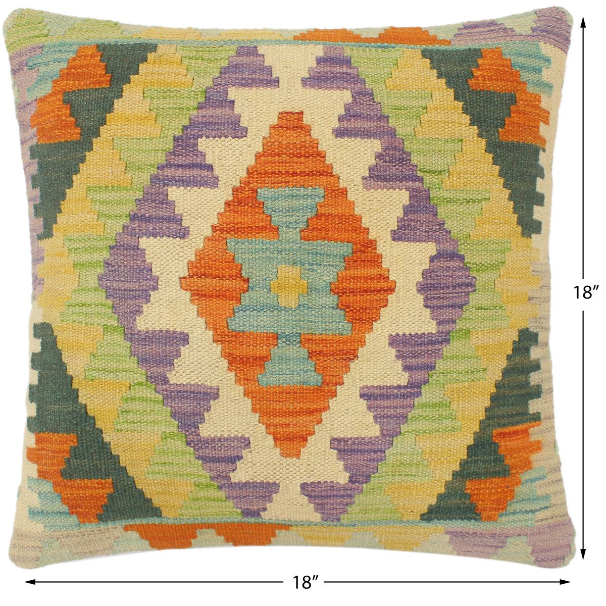 Embellish your home with this timeless casual chic handmade Southwestern Kilim throw pillow covers made with wool and cotton. Constructed on a loom by Nomad Turkman people with hand spun wool and Natural Vegetable dyes these beautiful Kilim pillow covers are known for their beautiful repetitive geometrical, naturalistic floral and traditional patterns yet still giving it a modern look. Masterfully artisan-crafted on traditional Kilim looms with a contemporary fashion palette producing bold intricate sharp patterns making them a standout piece in any decor.