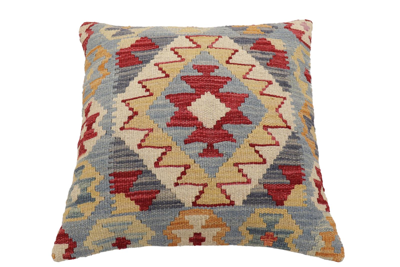 Embellish your home with this timeless casual chic handmade Southwestern Kilim throw pillow covers made with wool and cotton. Constructed on a loom by Nomad Turkman people with hand-spun wool and Natural Vegetable dyes these beautiful Kilim pillow covers are known for their beautiful repetitive geometrical, naturalistic floral, and traditional patterns yet still giving it a modern look. Masterfully artisan-crafted on traditional Kilim looms with a contemporary fashion palette producing bold intricate sharp patterns making them a standout piece in any decor.