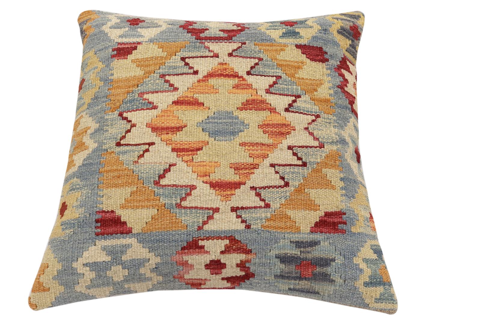 Embellish your home with this timeless casual chic handmade Southwestern Kilim throw pillow covers made with wool and cotton. Constructed on a loom by Nomad Turkman people with hand-spun wool and Natural Vegetable dyes these beautiful Kilim pillow covers are known for their beautiful repetitive geometrical, naturalistic floral, and traditional patterns yet still giving it a modern look. Masterfully artisan-crafted on traditional Kilim looms with a contemporary fashion palette producing bold intricate sharp patterns making them a standout piece in any decor.