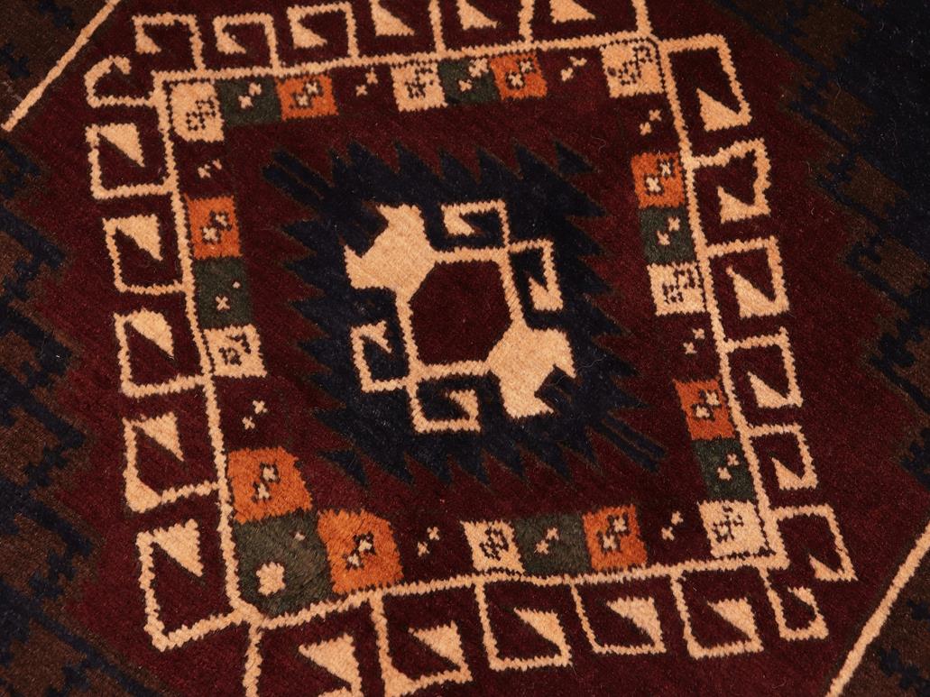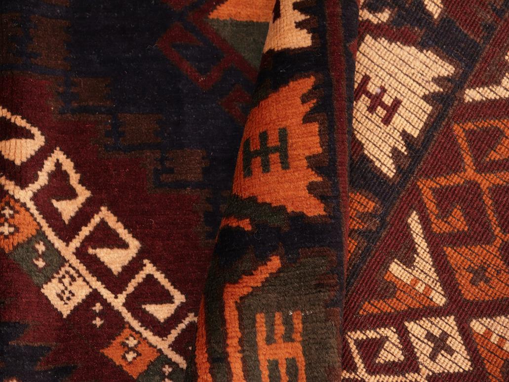 Create a new dimension of style in your home with this breath-taking semi-antique hand knotted Kargahi rug featuring incredible luxurious texture and appearance. Featuring vibrant awe-inspiring color pallet with an intricate geometrical design inspired by Uzbek and Kazak style, these one-of-a-kind rugs are a unique piece of world art that will enhance your living space. Made by skilled Uzbek Afghan master weavers in hand-spun wool and all vegetable dyes, Kargahi rugs blend in traditional to modern decor seamlessly.