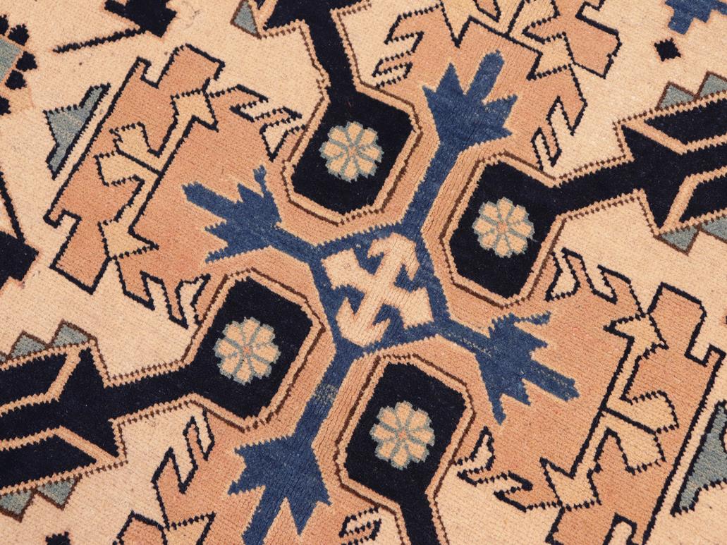 Create a new dimension of style in your home with this breath-taking semi-antique hand knotted Kargahi rug featuring incredible luxurious texture and appearance. Featuring vibrant awe-inspiring color pallet with an intricate geometrical design inspired by Uzbek and Kazak style, these one-of-a-kind rugs are a unique piece of world art that will enhance your living space. Made by skilled Uzbek Afghan master weavers in hand-spun wool and all vegetable dyes, Kargahi rugs blend in traditional to modern decor seamlessly.