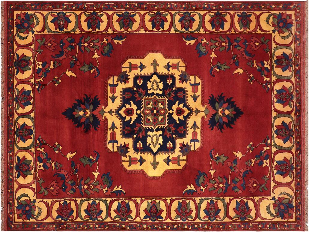 Antique Vintage Kargahi Zandra Rust/Gold Wool Rug - 7'1'' x 9'10''