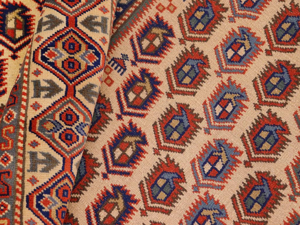 Create a new dimension of style in your home with this breath-taking hand knotted Sherwan rug featuring incredible luxurious texture and appearance. This gorgeous Sherwan rug also known as Shirvan is hand-knotted by Persian master weavers from Azerbaijan in Afghanistan using precious handspun Ghazni wool and vegetable dyes. Featuring vibrant awe-inspiring color pallet with intricate geometric allover design these one-of-a-kind rugs are rooted in the traditional styles of Eastern Turkey and the Caucasus. The complexity of the composition and the intricate patterns featuring all-over design with beautiful color pallet add stylistic richness to any space.