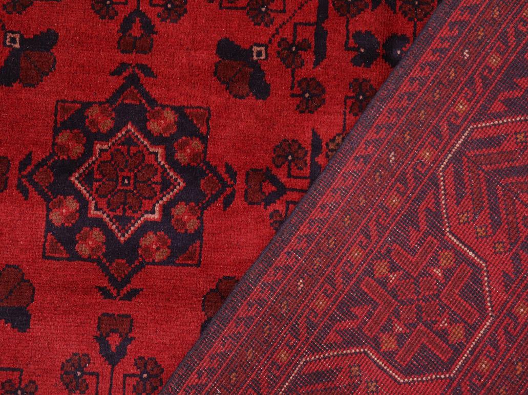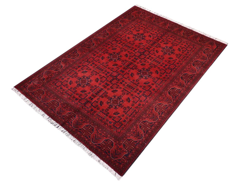 Stunning handmade rug crafted from high quality wool and hand knotted by the Esari Turkmen of Northern Afghanistan. Featuring a geometric pattern, this Biljilk Khal Mohammadi design with dark hues gives this masterpiece a dreamy serenity which adds an undeniable element of luxury to any room in your home.