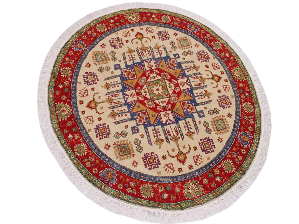 Bohemian Kazak Snider Ivory/Red Wool Round - 6'5'' x 6'6''