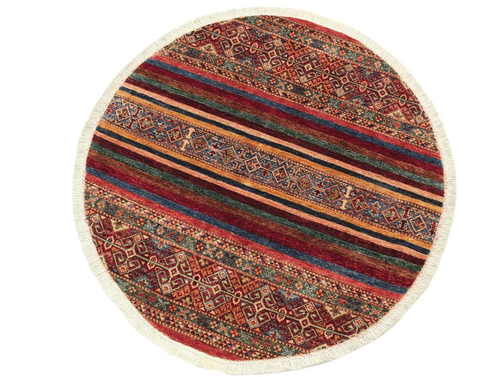 Southwestern Khurgeen Norma Red/Blue Wool Round - 3'11'' x 4'0''