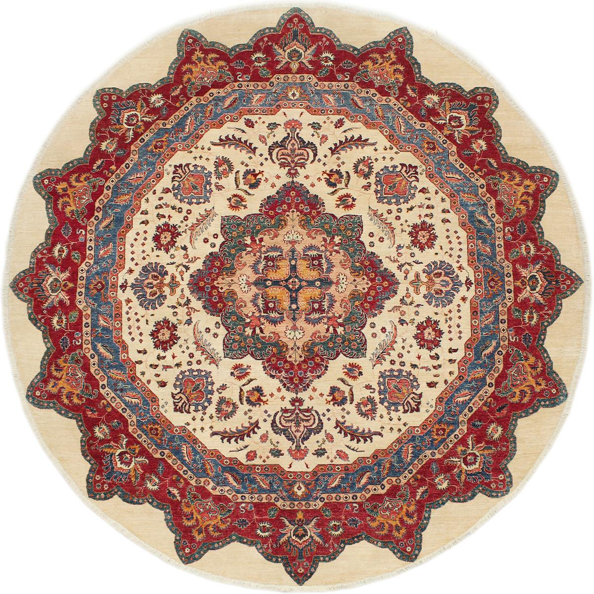 Cabin Khurgeen Sulema Beige/Red Wool Round - 10'0'' x 10'3''
