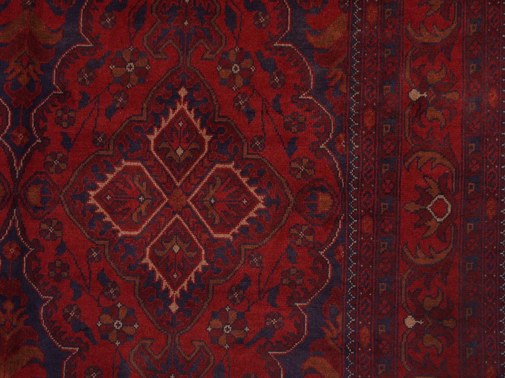 Stunning handmade rug crafted from high quality wool and hand knotted by the Esari Turkmen of Northern Afghanistan. Featuring a geometric pattern, this Biljilk Khal Mohammadi design with dark hues gives this masterpiece a dreamy serenity which adds an undeniable element of luxury to any room in your home.