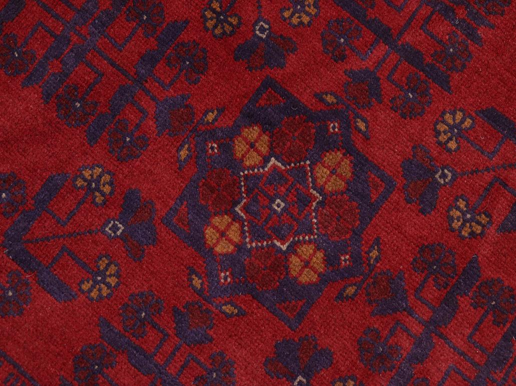 Stunning handmade rug crafted from high quality wool and hand knotted by the Esari Turkmen of Northern Afghanistan. Featuring a geometric pattern, this Biljilk Khal Mohammadi design with dark hues gives this masterpiece a dreamy serenity which adds an undeniable element of luxury to any room in your home.