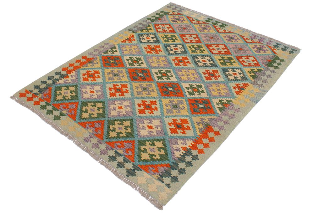 Retro Turkish Kilim Milan Hand-Woven Wool Rug - 4'2'' x 5'8''